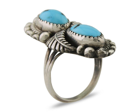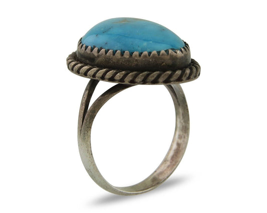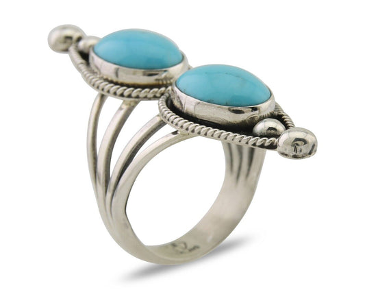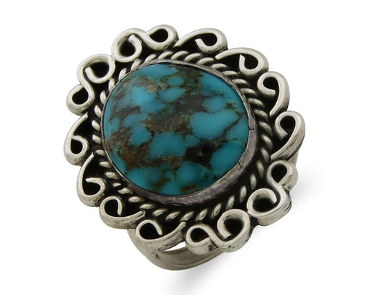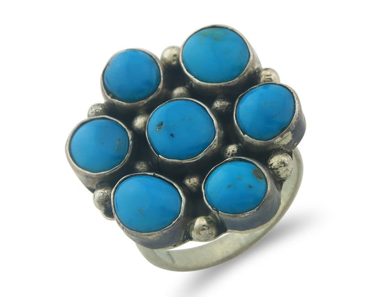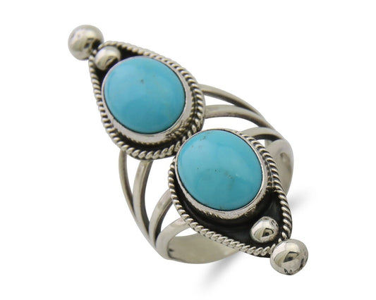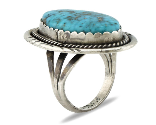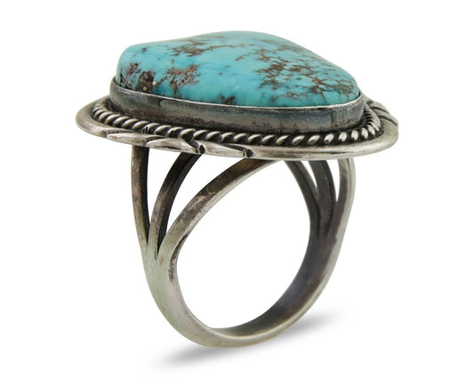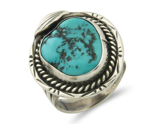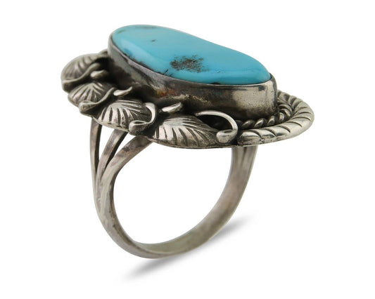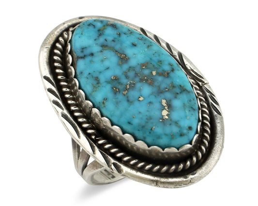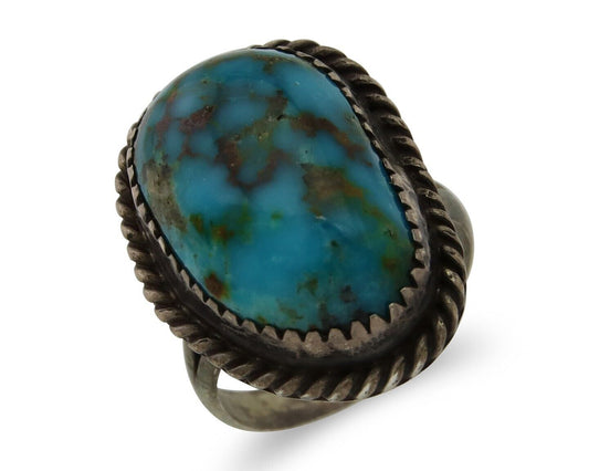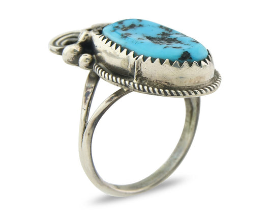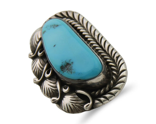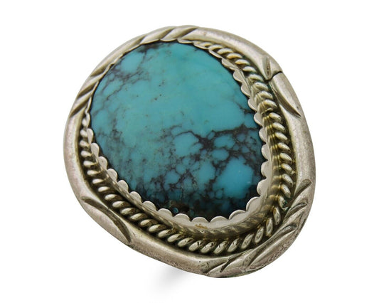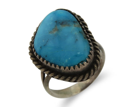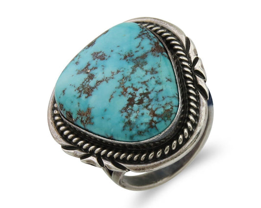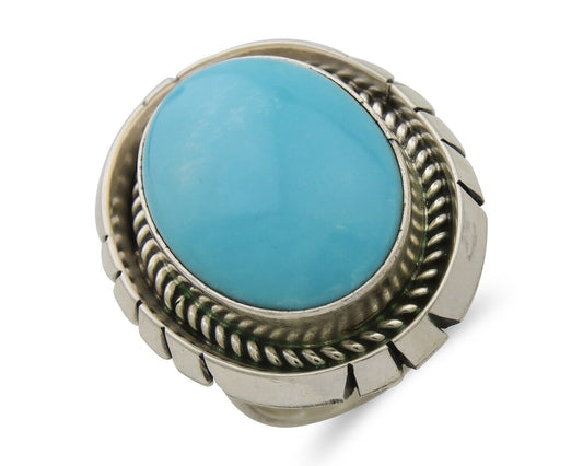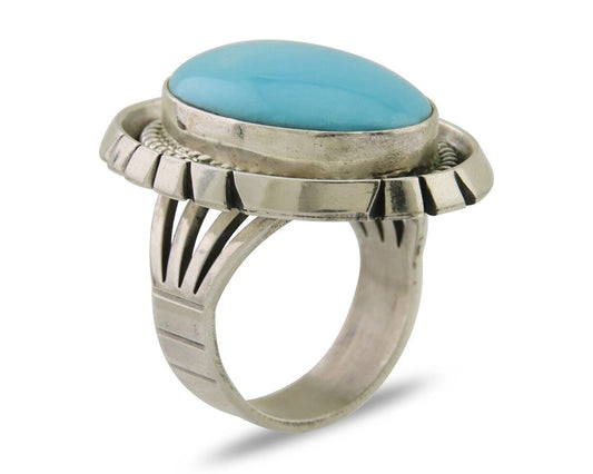 Navajo Museum Quality Handmade .925 Silver Large Natural Blue Turquoise Ring