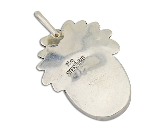 C. 1980's Santa Domingo Natural Gemstone Inlaid Handmade .925 Silver Pendant