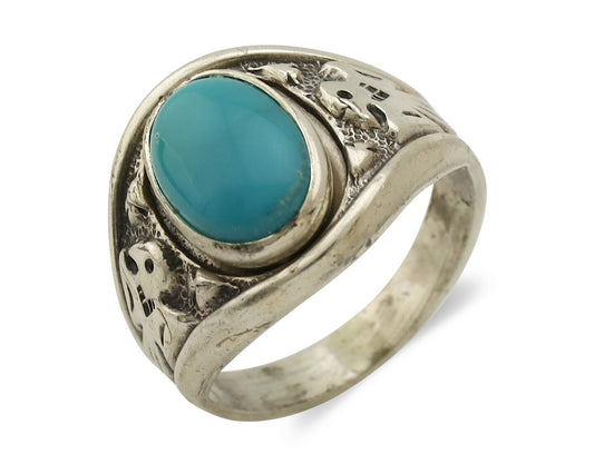 Navajo Fox Turquoise Ring 925 Silver Native American Artist C.80's Size 8.25