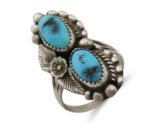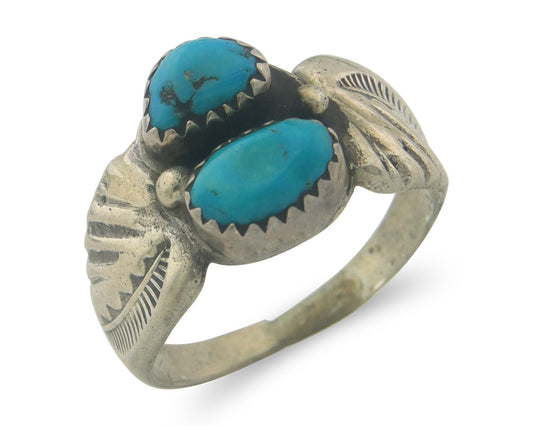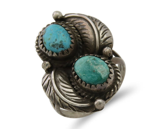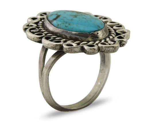 Navajo Turquoise Ring 925 Silver Handmade Native American Artist C.80's
