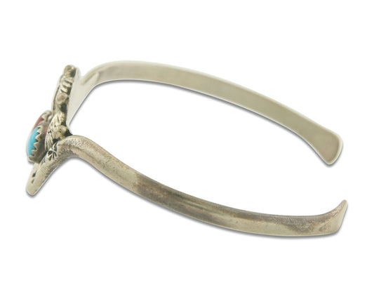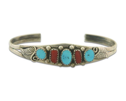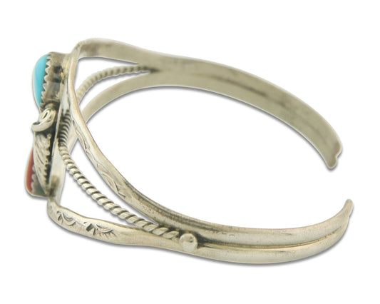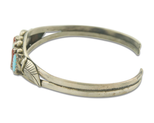 Vintage Navajo Bracelet 925 Silver Red Coral Turquoise Authentic