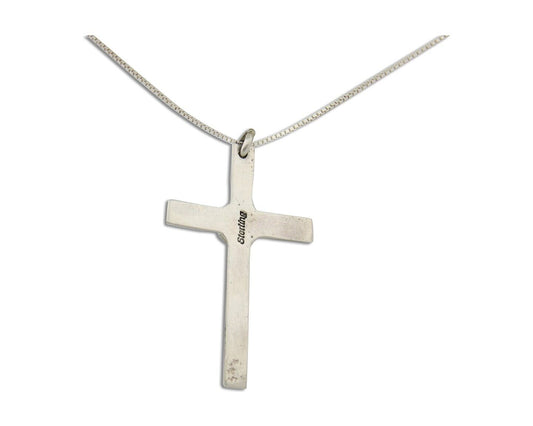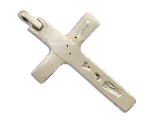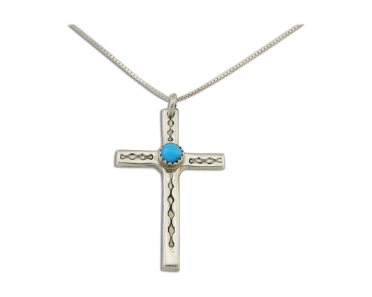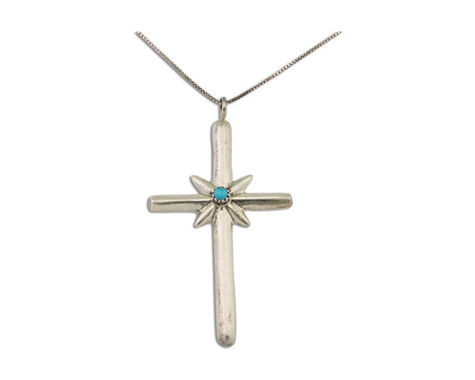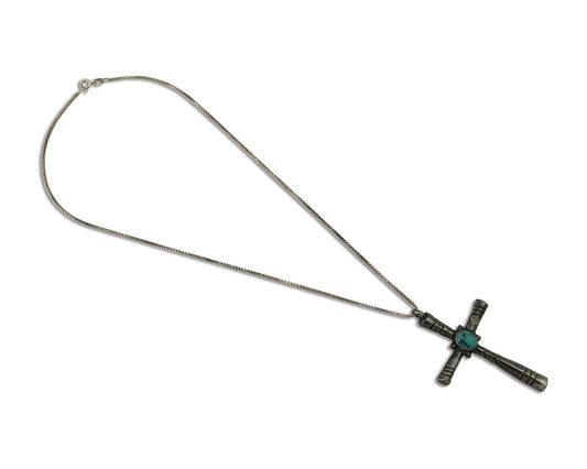 Navajo Sand Cast Cross Pendant 925 Silver Turquoise Native Artist C.80s