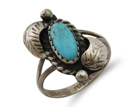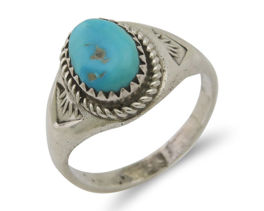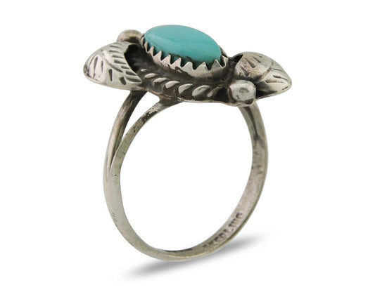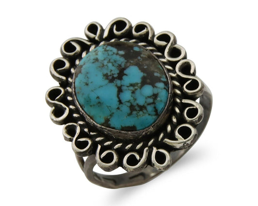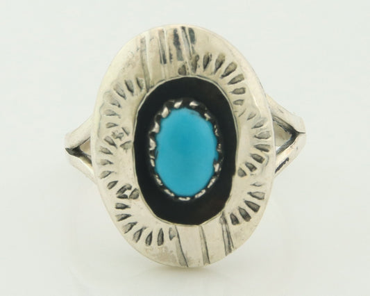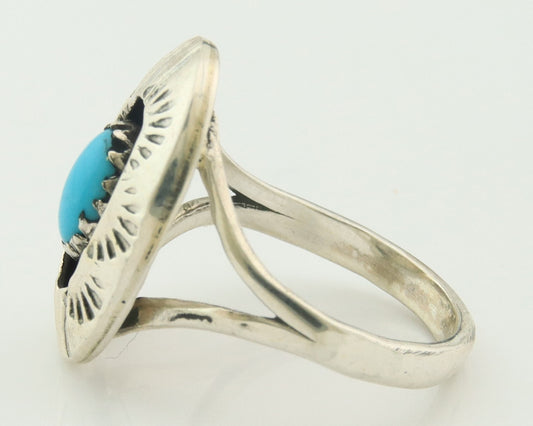 Navajo Turquoise Ring 925 Silver Native Artist Signed Sunrise Size 6.0 C.80's