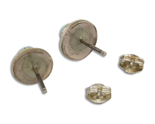 Navajo Snake Eye Earrings 925 Silver Blue Turquoise Native American Artist C.80s