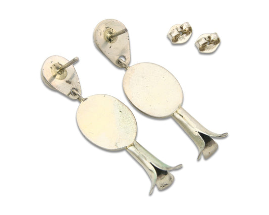 Navajo Squash Earrings 925 Silver Natural Turquoise Native American Artist C80s