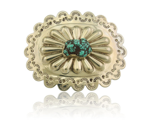 Navajo Concho Belt Buckle .999 Nickel Turquoise Native American 2.0x3.0 in C80s