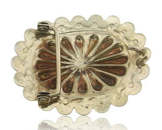 Navajo Concho Belt Buckle .999 Nickel Onyx Native American Artist 2x3 in C.80's