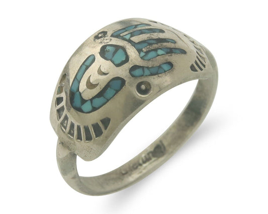 Navajo Ring 925 Silver Inlaid Turtle Turquoise C.80's Size 8.0
