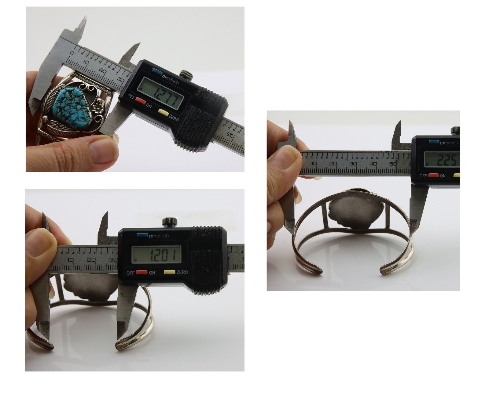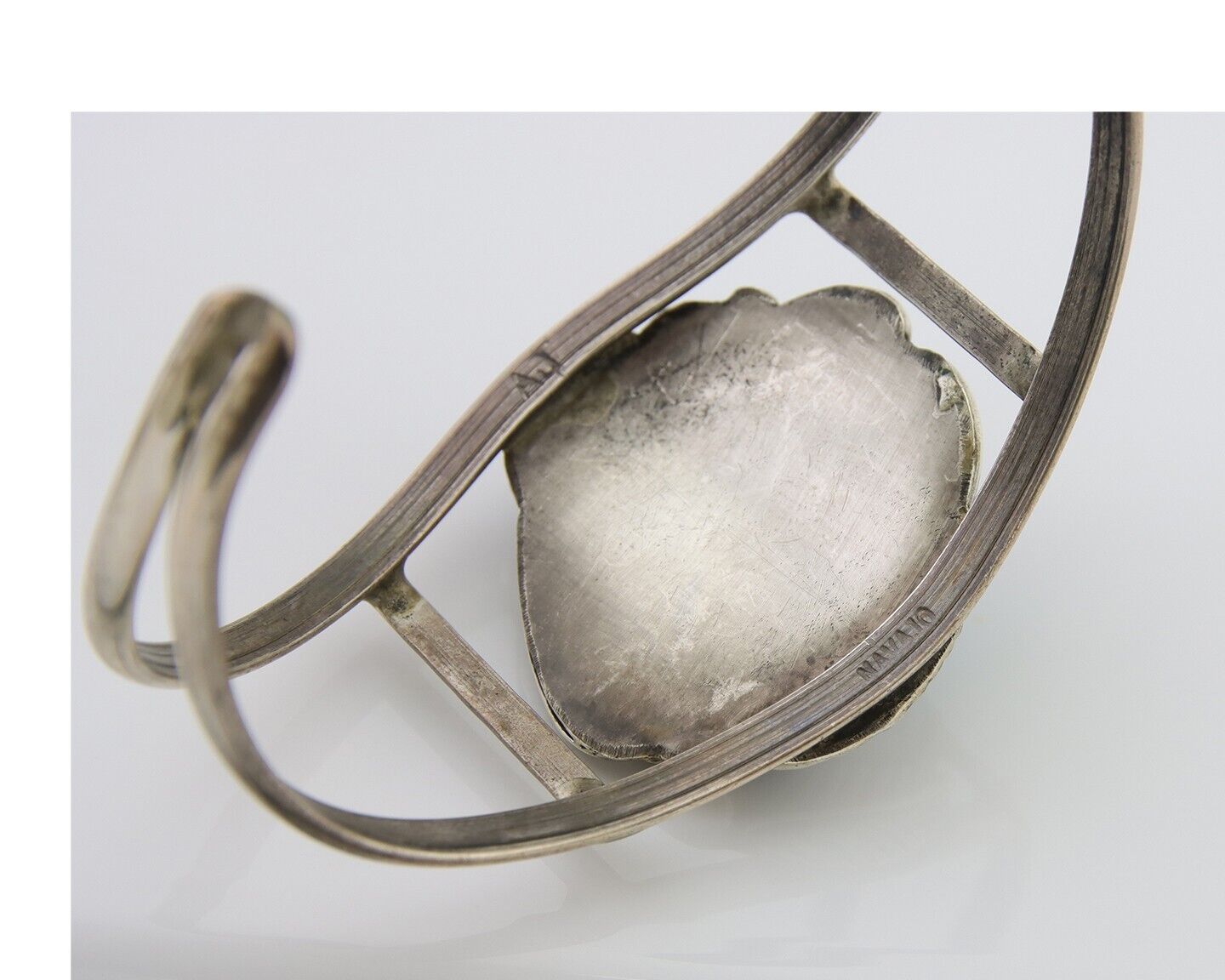 Navajo Bracelet 925 Silver Blue Nugget Turquoise Artist Signed AJ C.80's