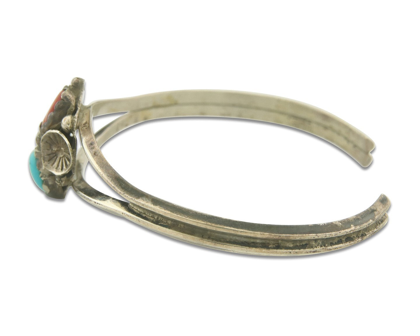 Navajo Bracelet 925 Silver Coral & Turquoise Cuff Signed C.80's