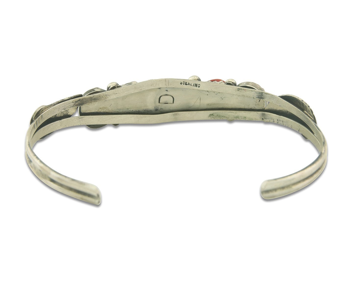 Navajo Bracelet 925 Silver Coral & Turquoise Cuff Signed D C.80's