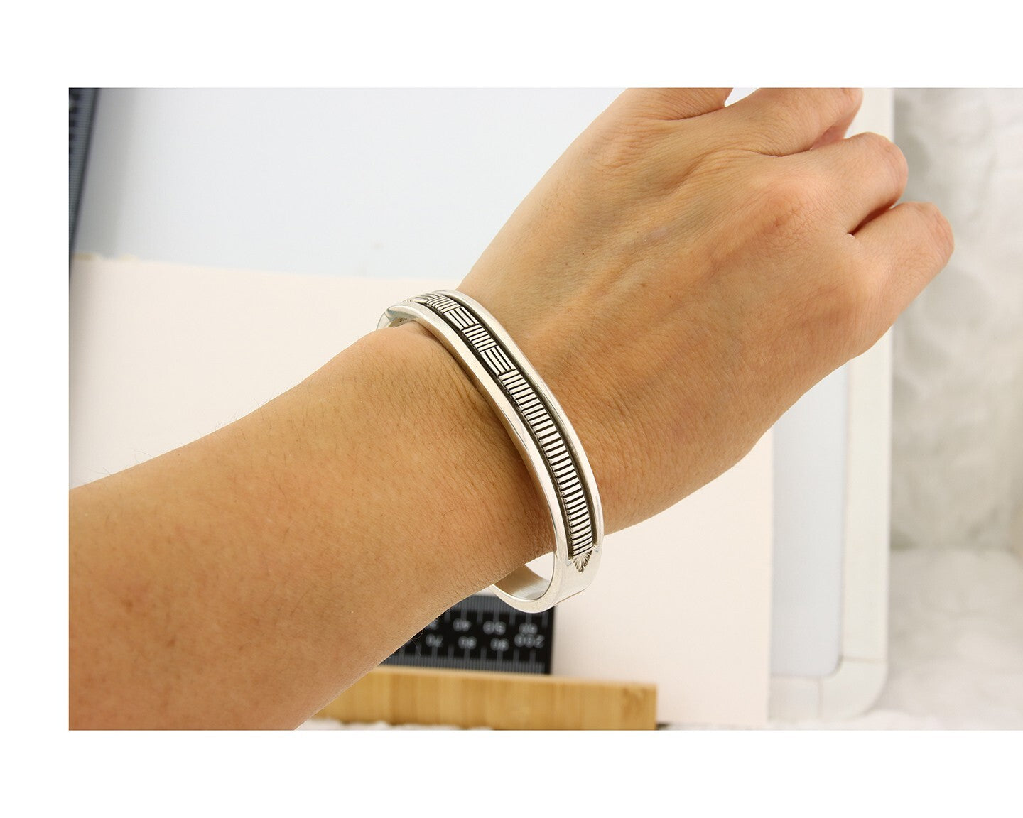 Navajo Bracelet 925 Silver Heavy Hand Stamped Signed Bruce Morgan C.80's