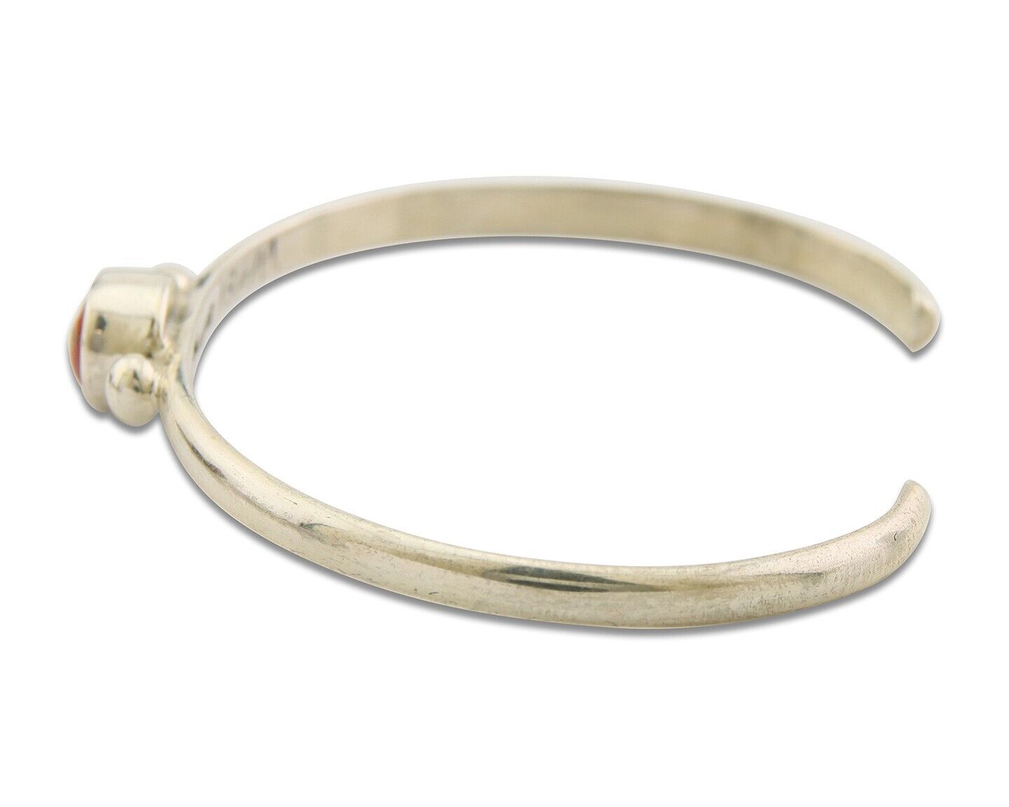 Navajo Bracelet .925 Silver Mediterranean Red Coral Cuff Native Artist C.80's