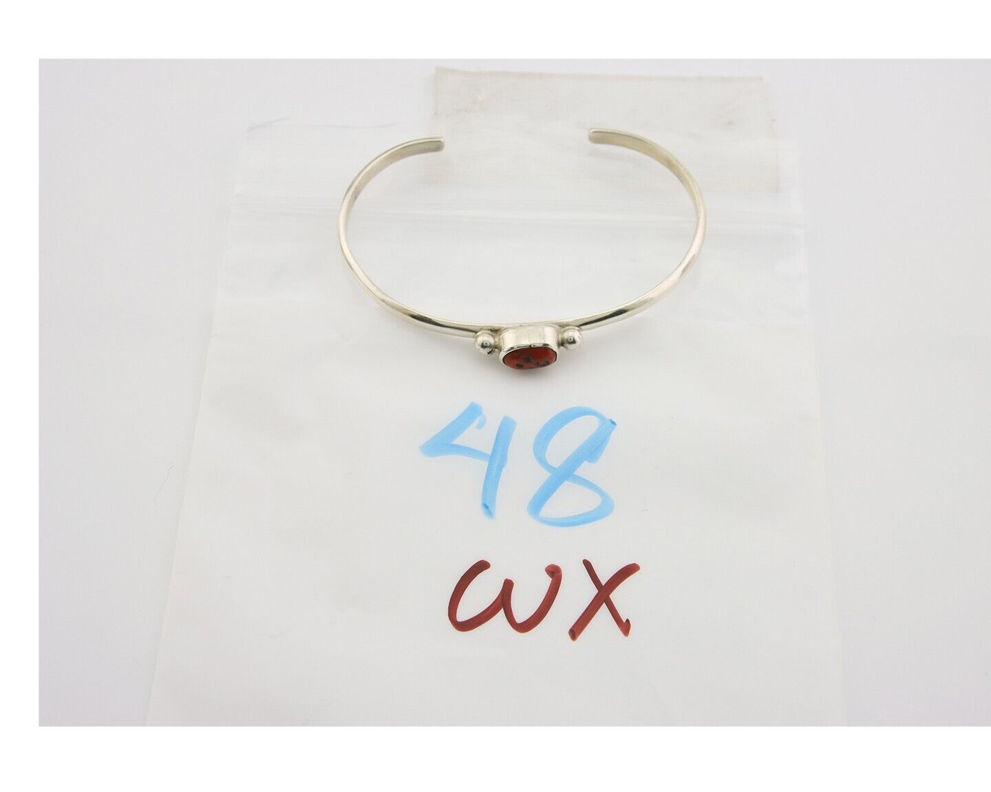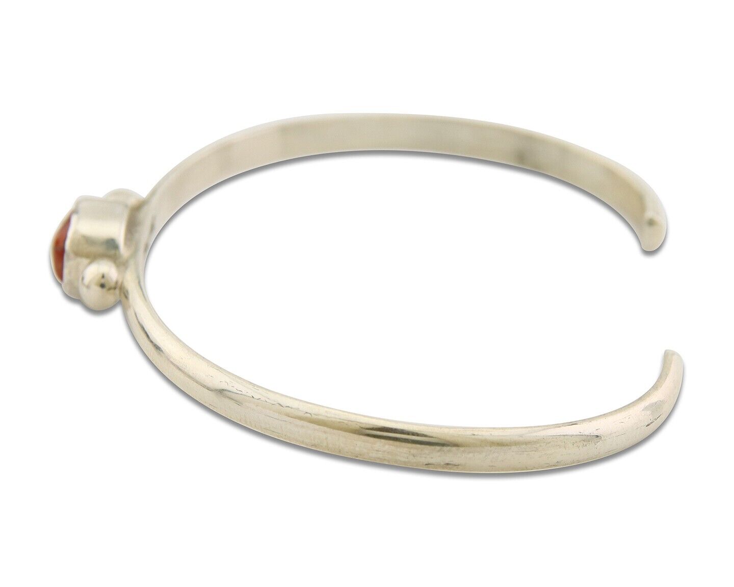 Navajo Bracelet .925 Silver Mediterranean Red Coral Cuff Native Artist C.80's