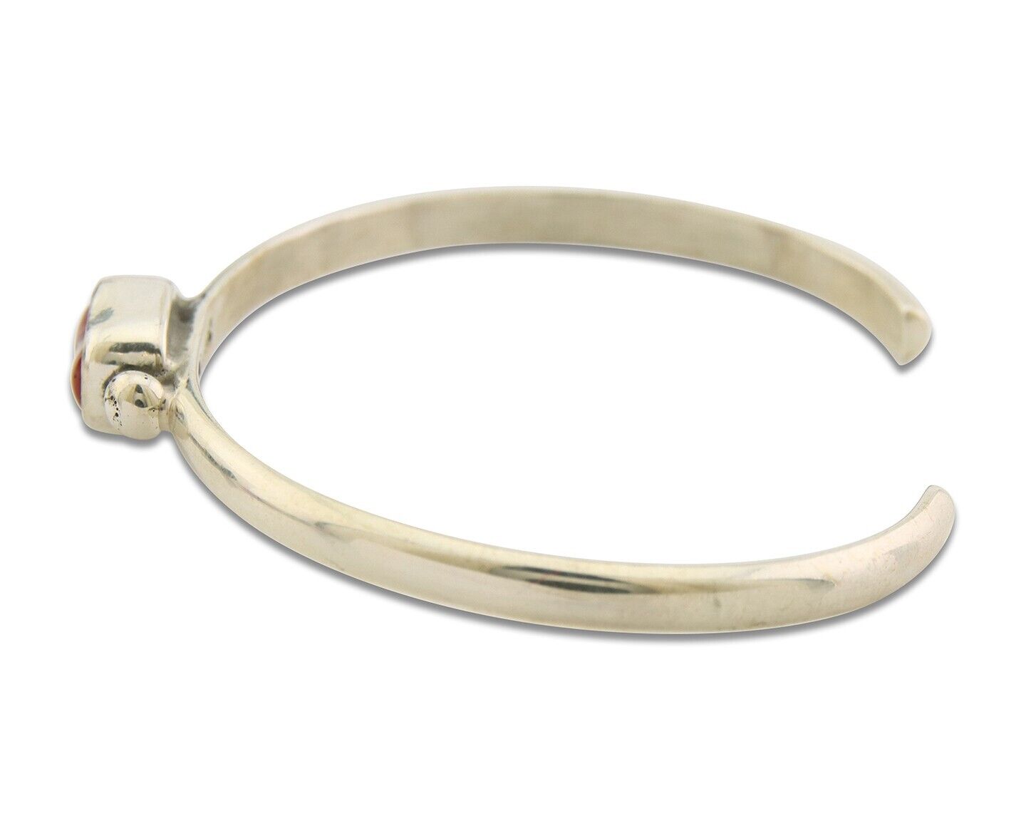 Navajo Bracelet .925 Silver Mediterranean Red Coral Cuff Native Artist C.80's