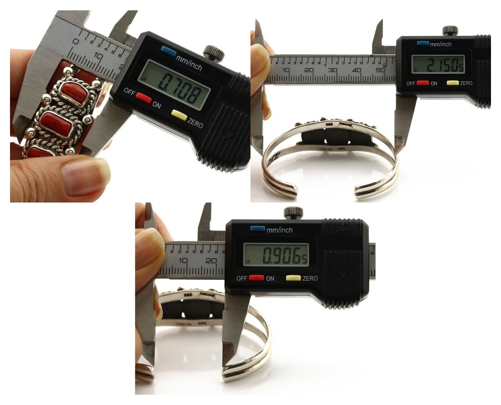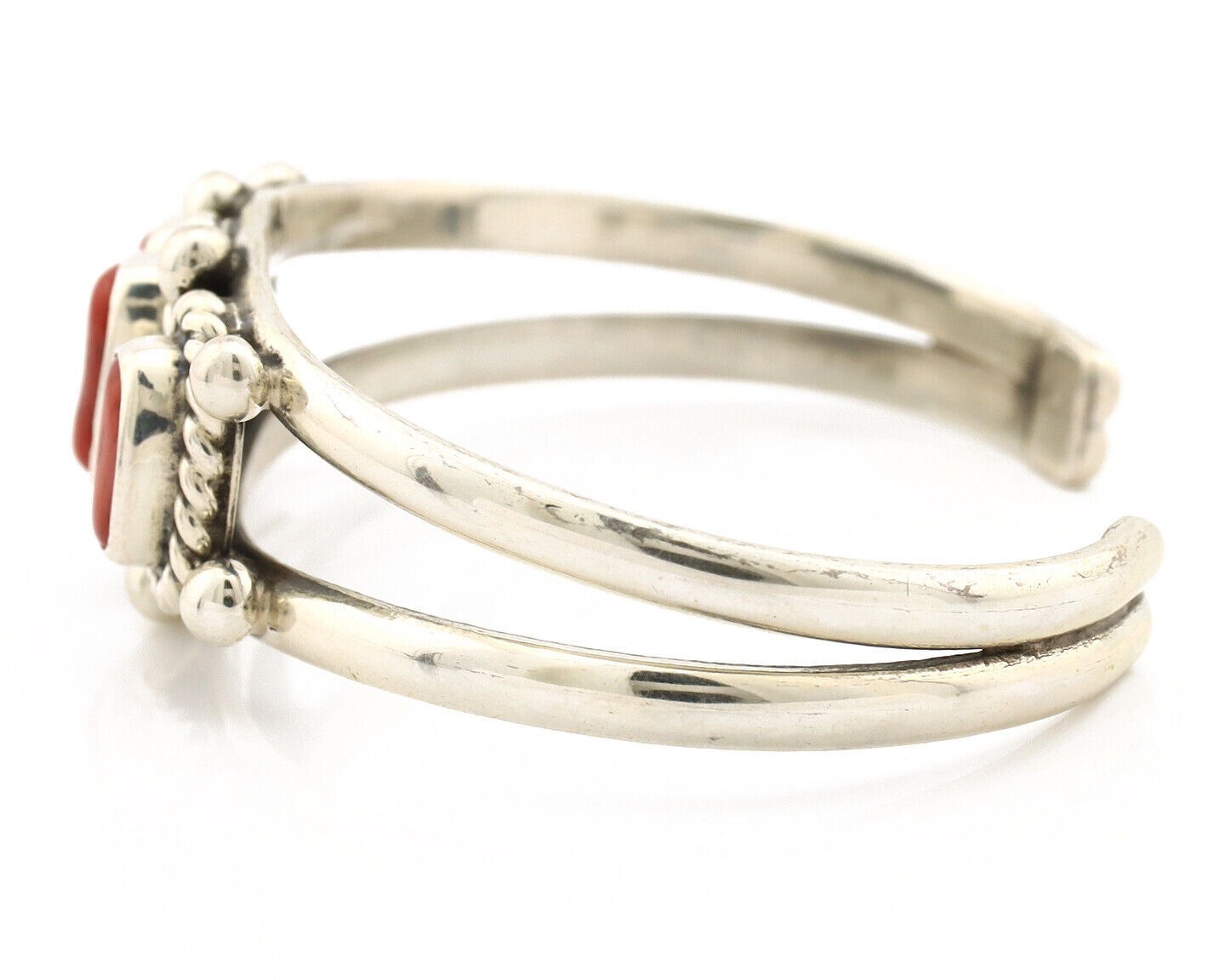 Navajo Bracelet .925 Silver Natural Red Coral Artist Native American C.1980's