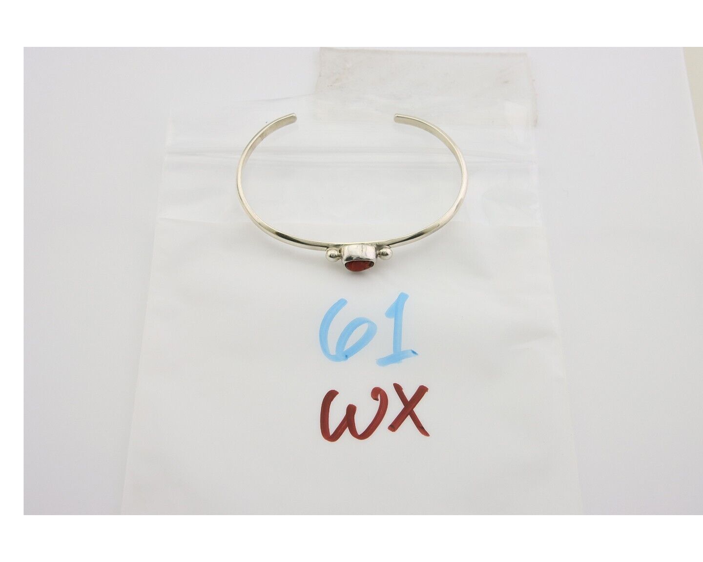 Navajo Bracelet .925 Silver Natural Red Coral Cuff Native American Artist C.80's