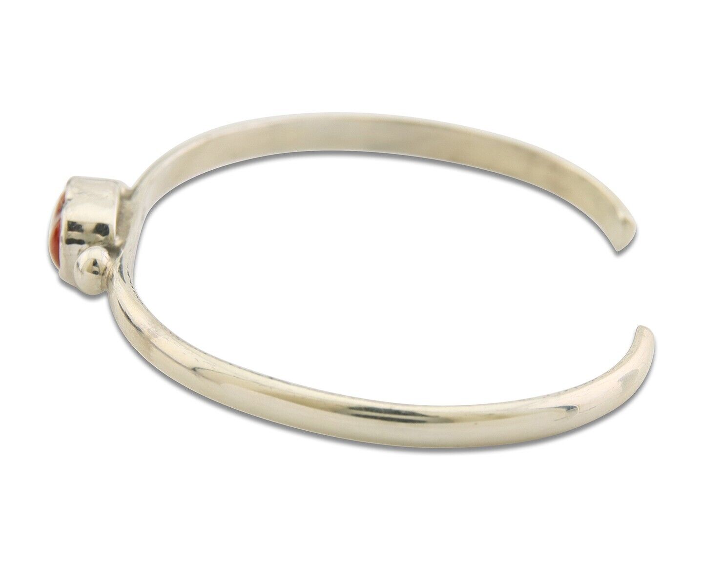 Navajo Bracelet .925 Silver Natural Red Coral Cuff Native American Artist C.80's