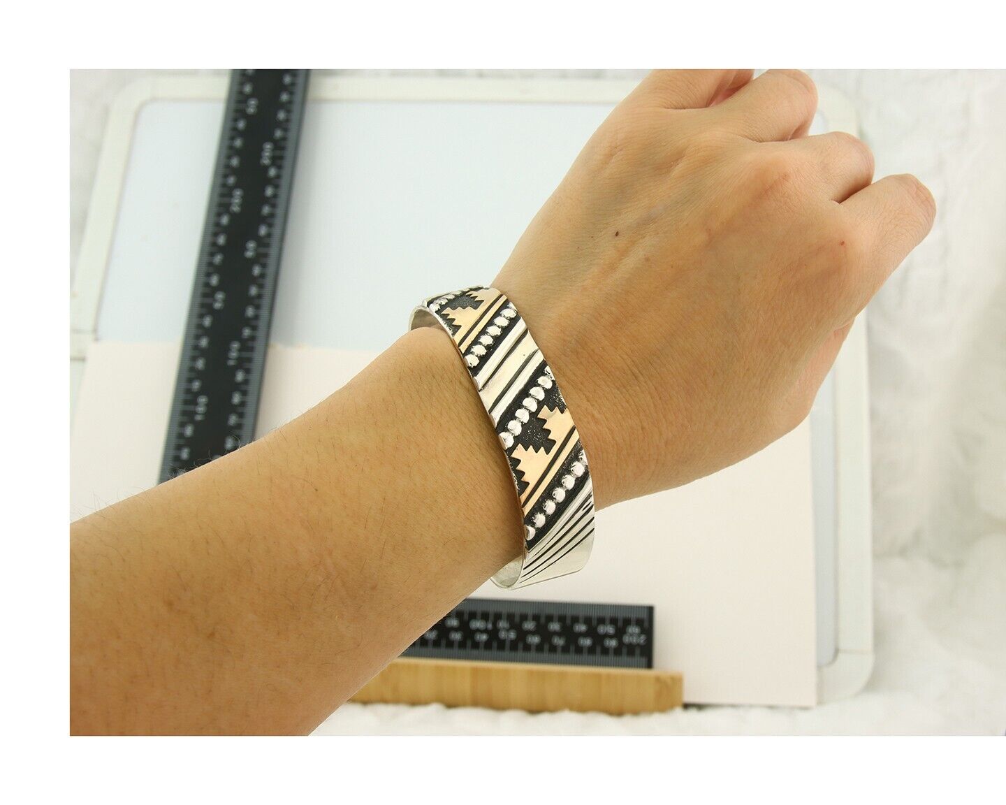 Navajo Bracelet Gold & 925 Silver Handmade 16mm Wide Artist Signed Thomas Singer