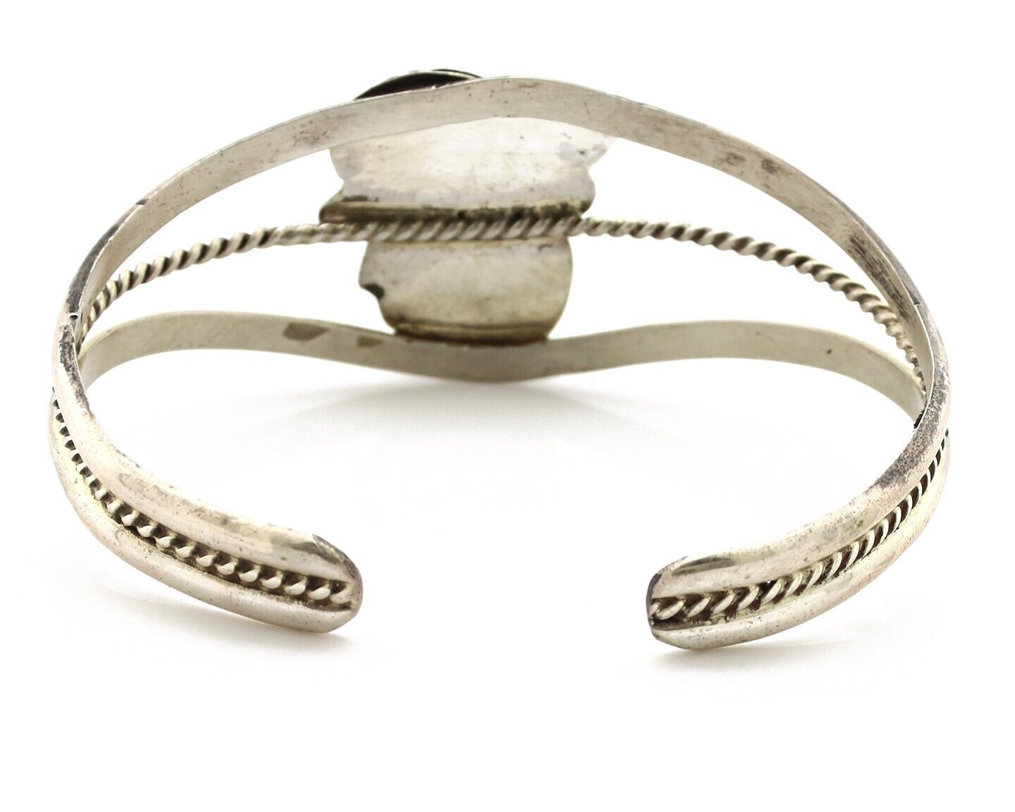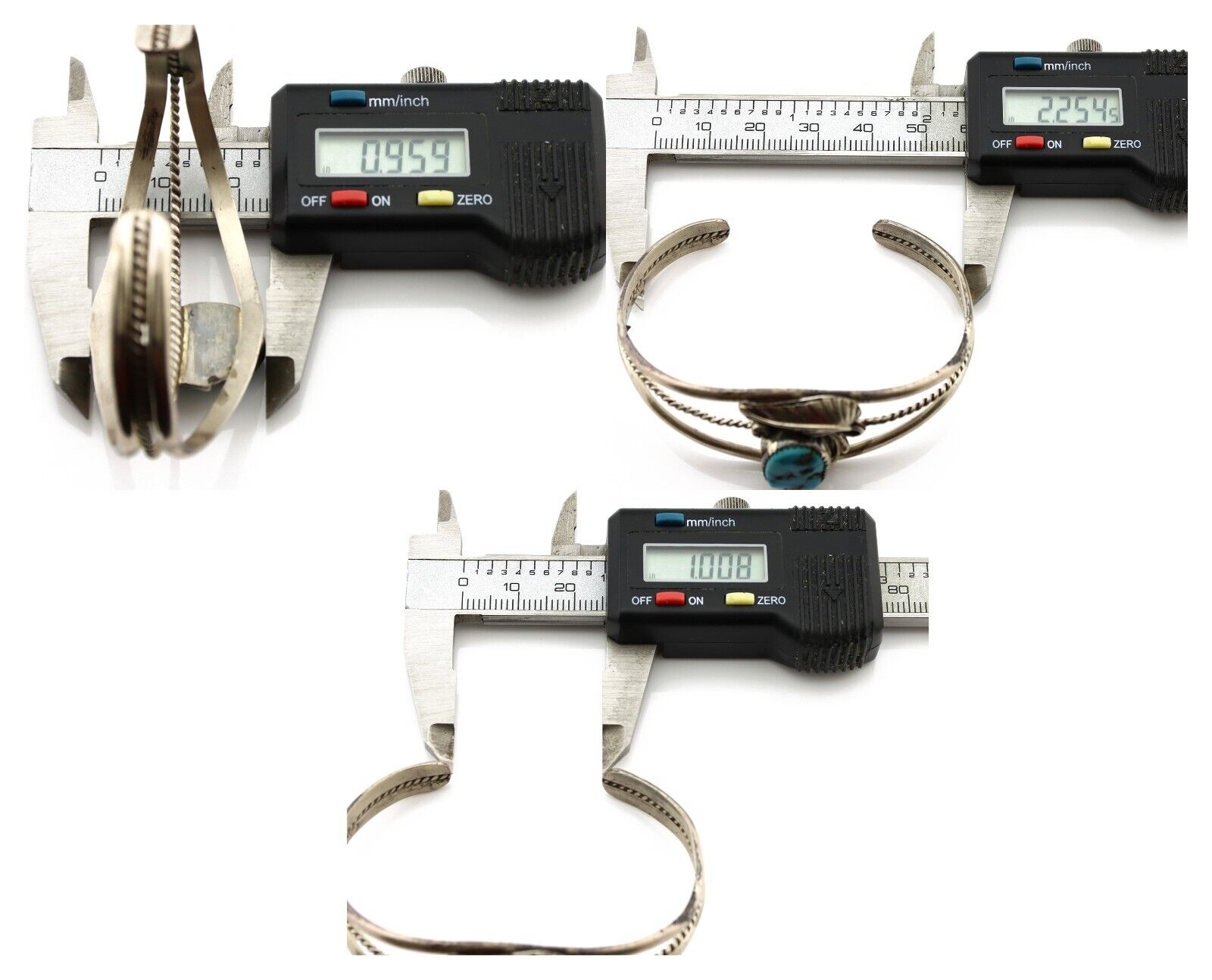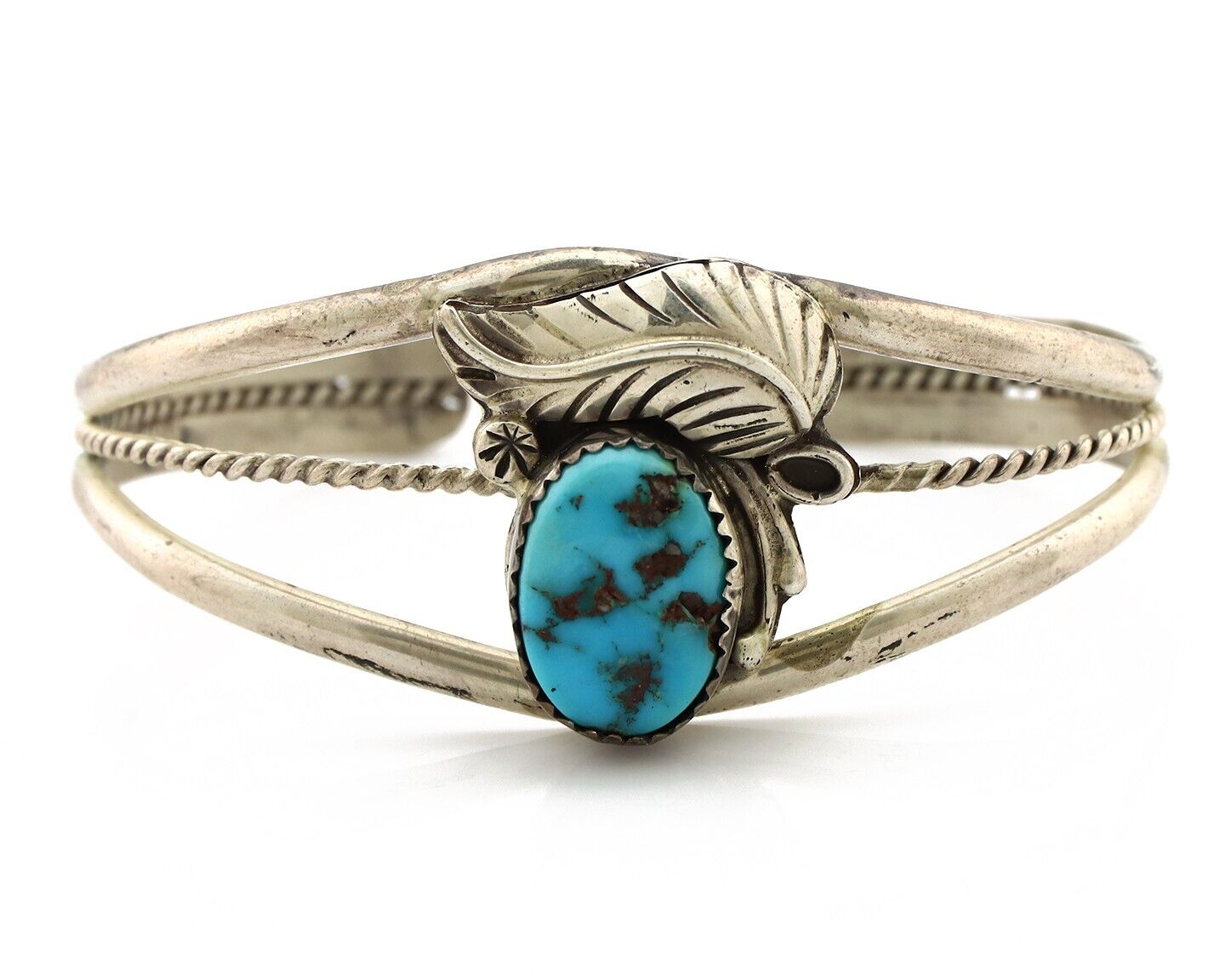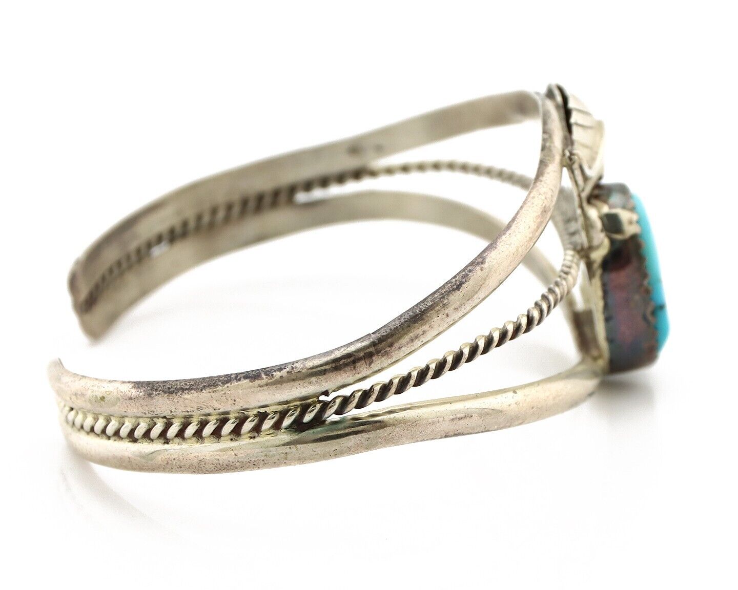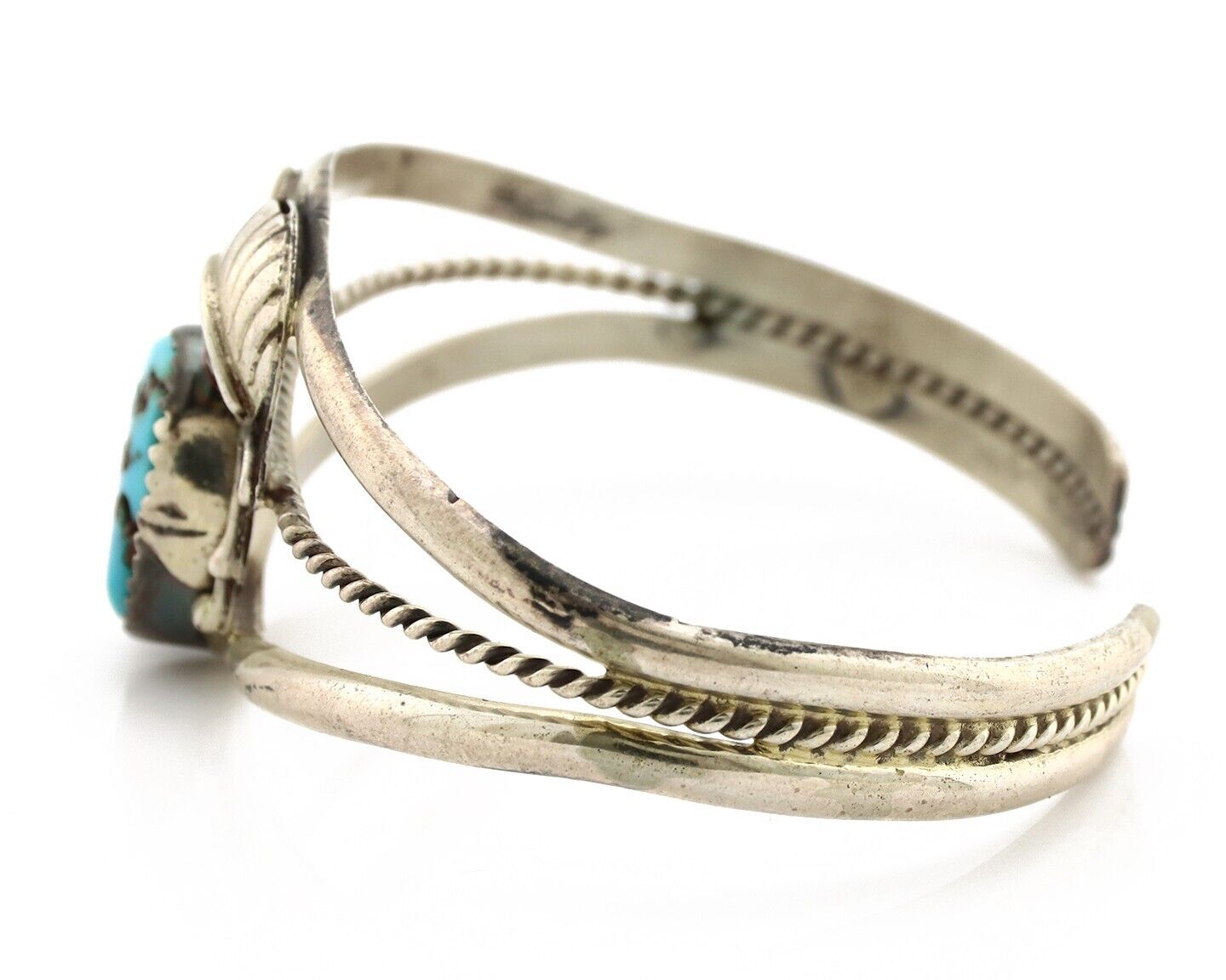 Navajo Chip Inlay Cuff Bracelet 925 Silver Turquoise Native American Artist C80s