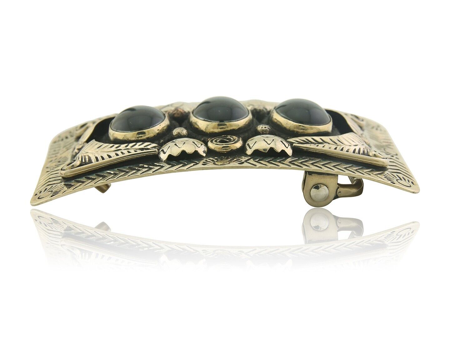Navajo Concho Belt Buckle .999 Nickel Onyx Native American Artist 2x3 in C.80's