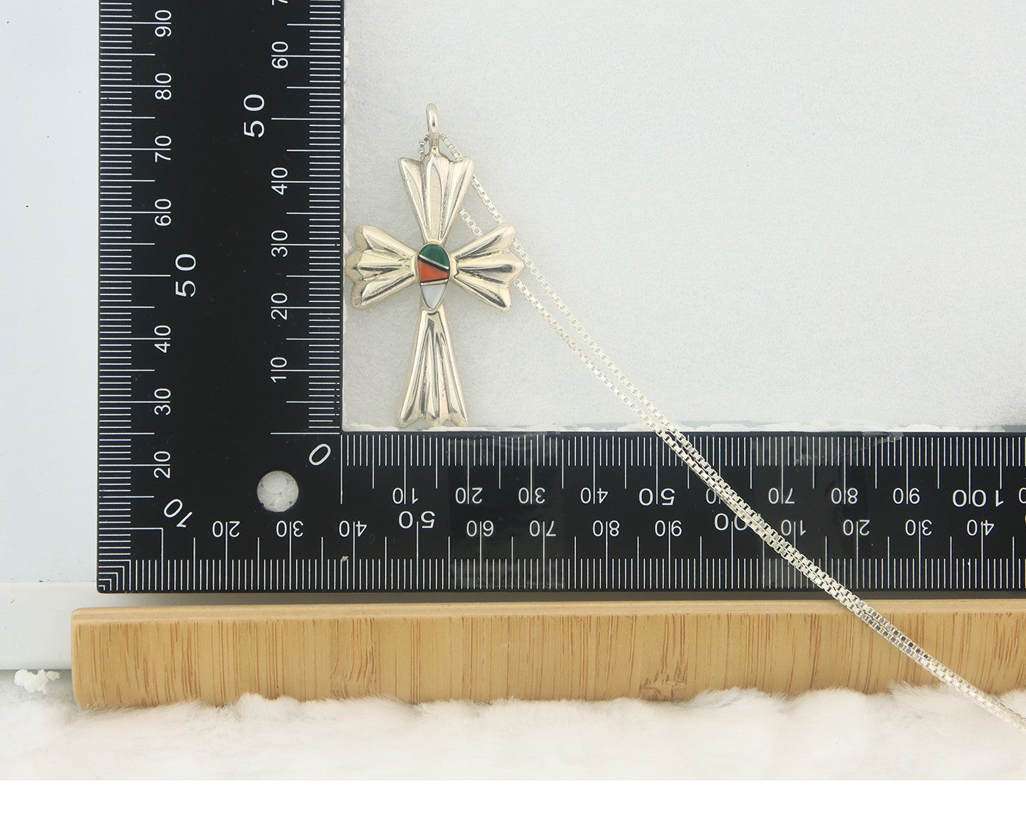 Navajo Cross Necklace Sterling Silver Authentic Natural Gemstones Signed M