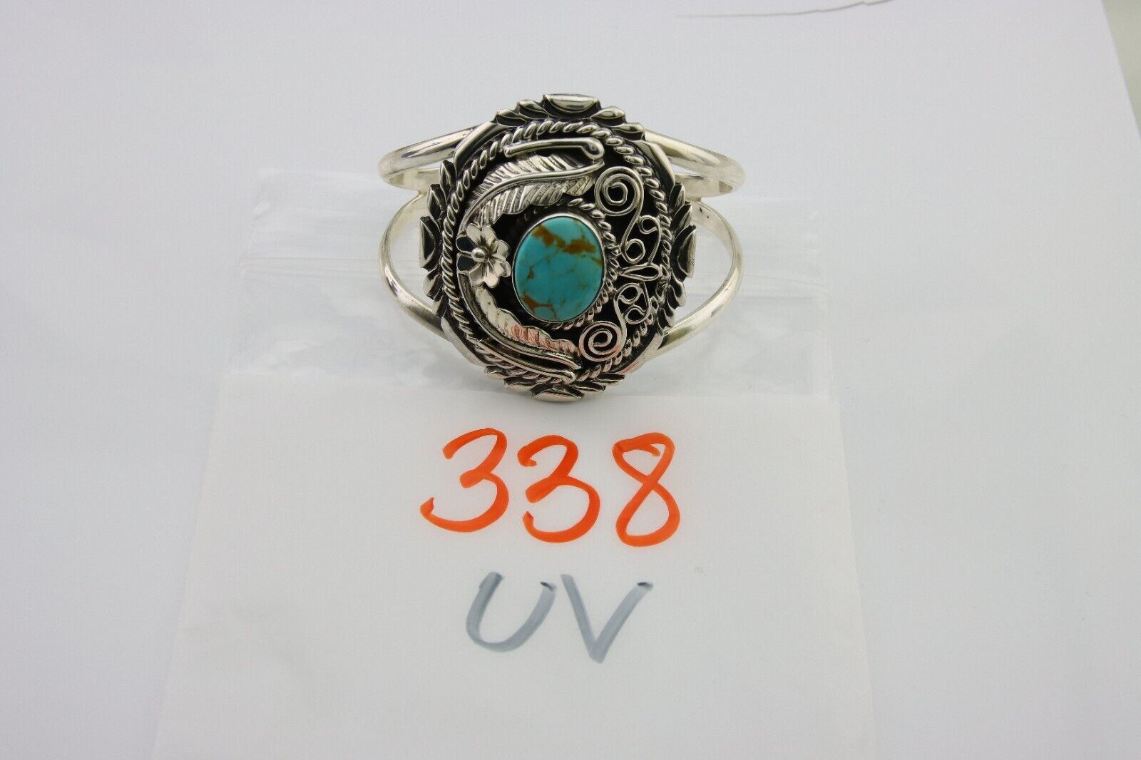 Navajo Cuff Bracelet 925 Silver Cuff Turquoise Cuff Native American Artist C80's