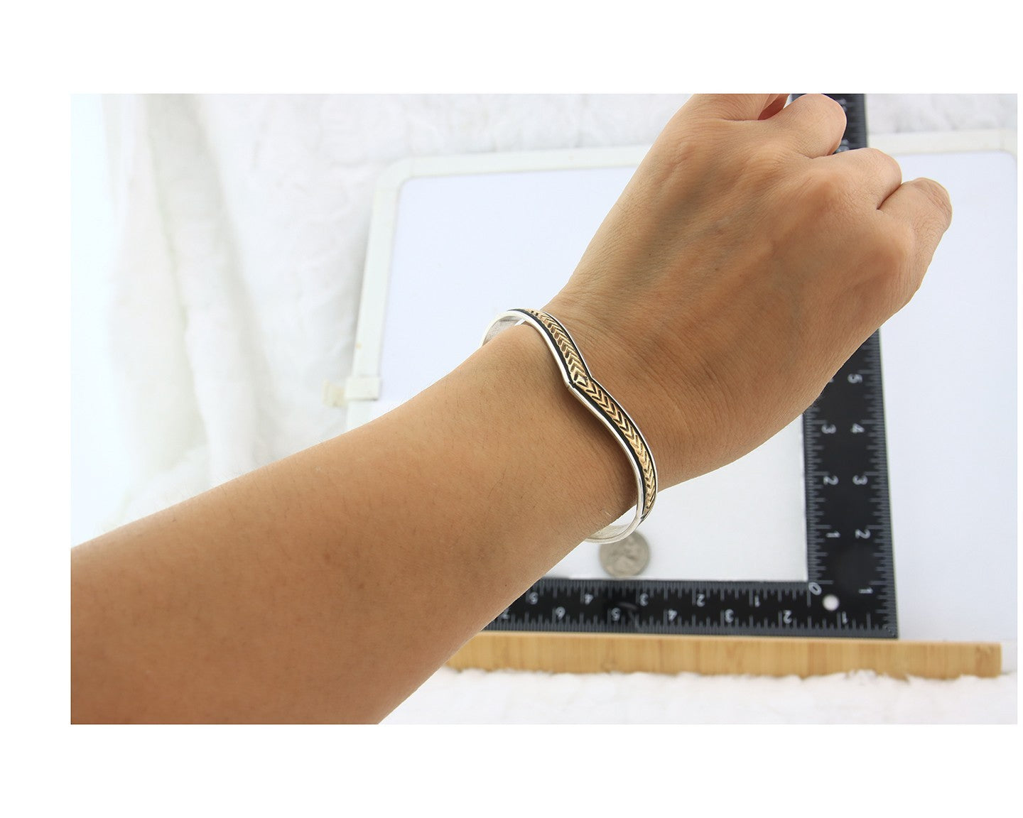 Navajo Cuff Bracelet Sterling Silver & Gold Vintage Signed RL