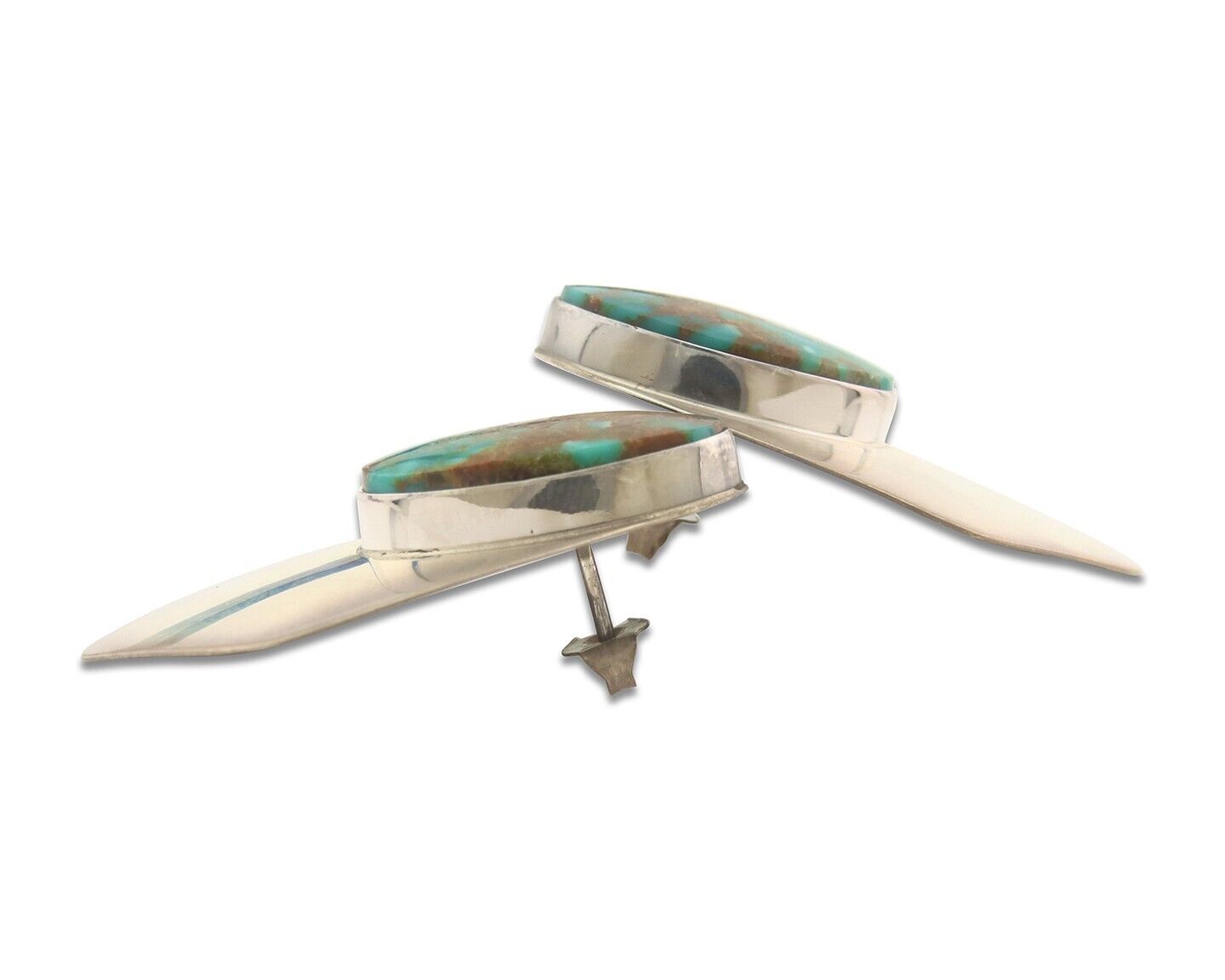 Navajo Earrings 925 Silver Handmade Natural Turquoise Native Artist C.80's