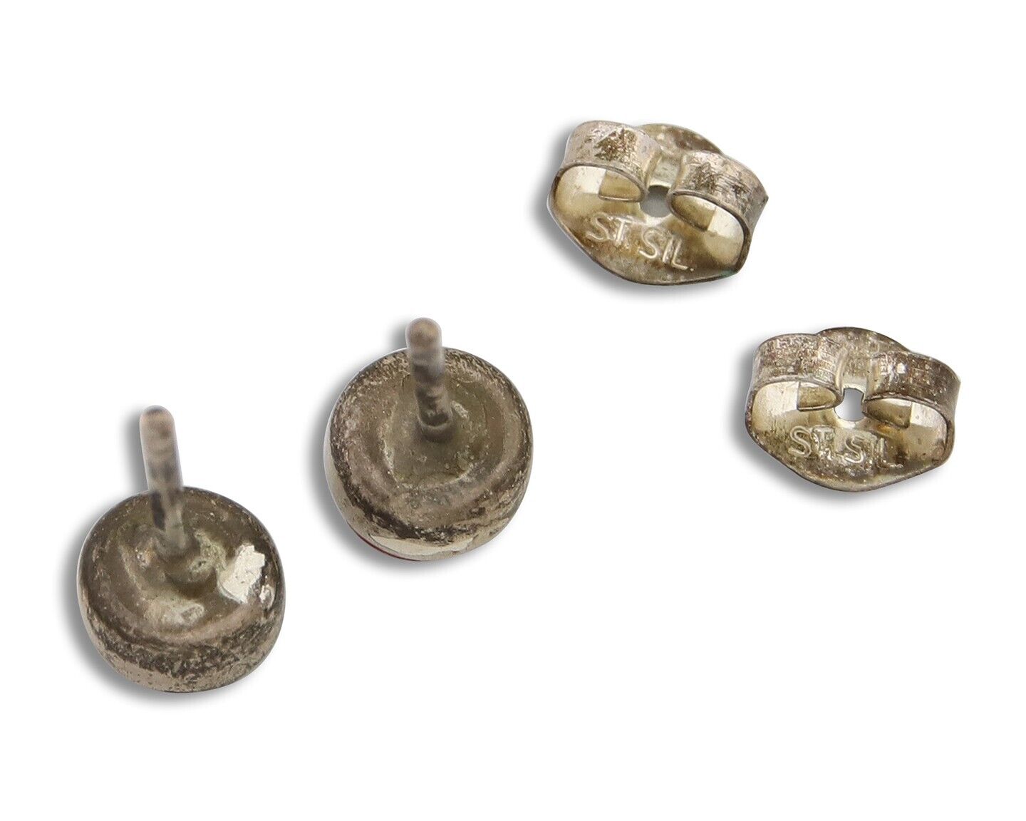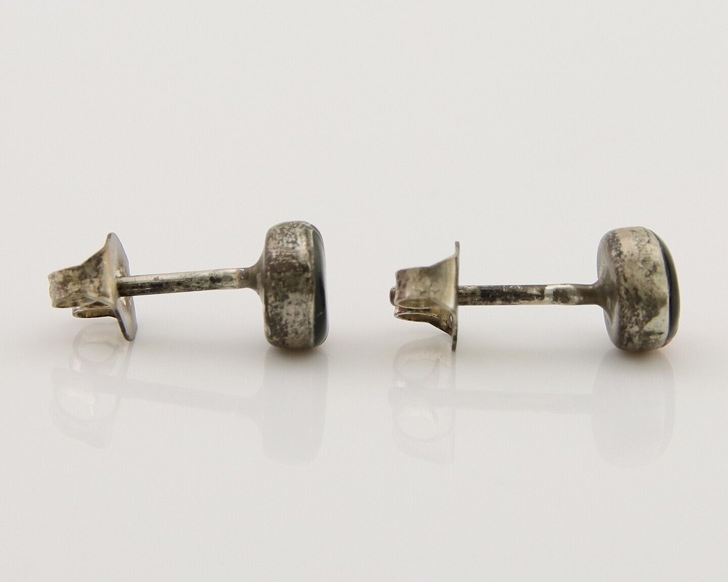 Navajo Earrings 925 Silver Inlaid Natural Onyx & Coral Native Artist C.80's