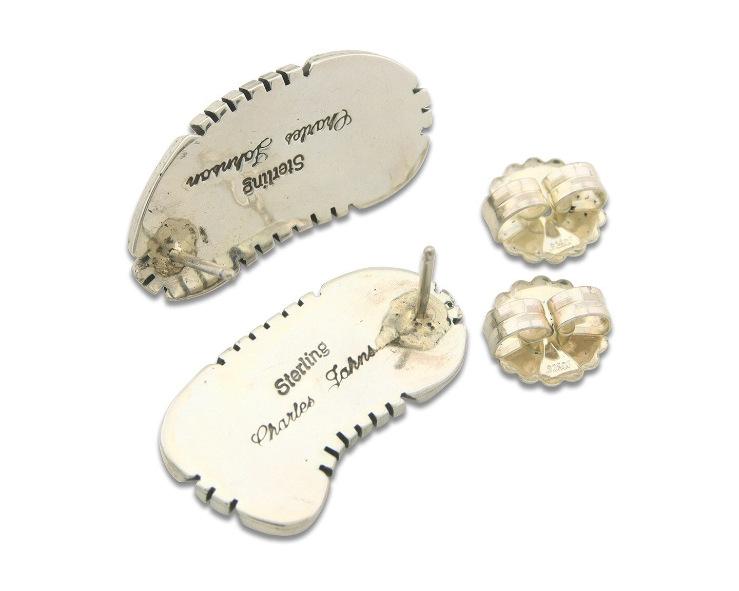 Navajo Earrings 925 Silver Natural Coral Artist Signed Charles Johnson C.80's