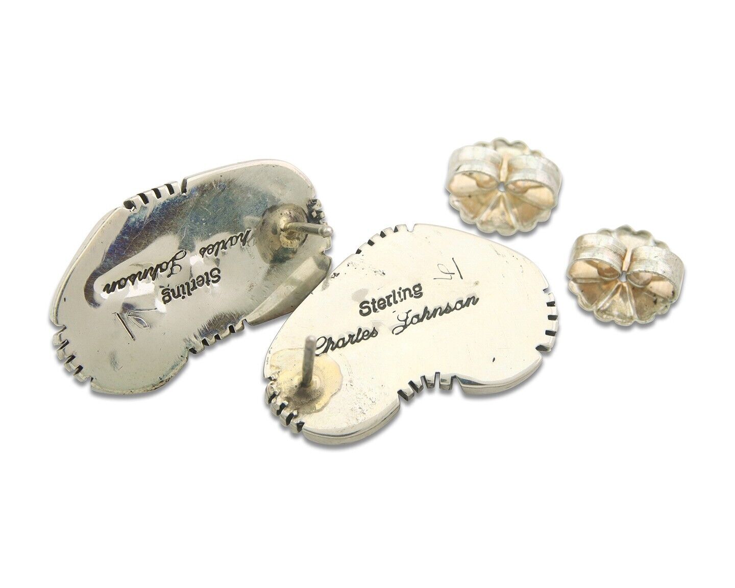 Navajo Earrings 925 Silver Natural Coral Artist Signed Charles Johnson C.80's