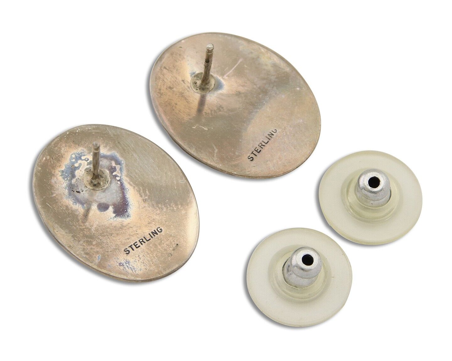 Navajo Earrings 925 Silver Natural Green Native American Artist C.80's