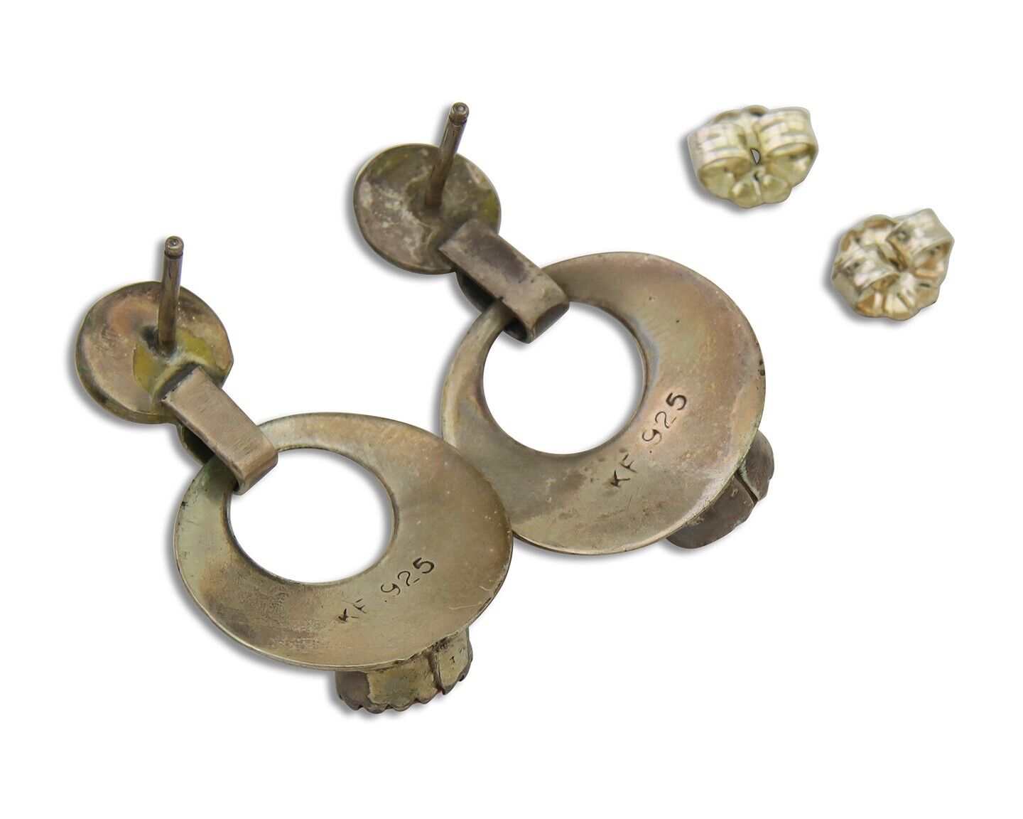 Navajo Earrings 925 Silver Natural Red Coral Artist Signed KF C.80's