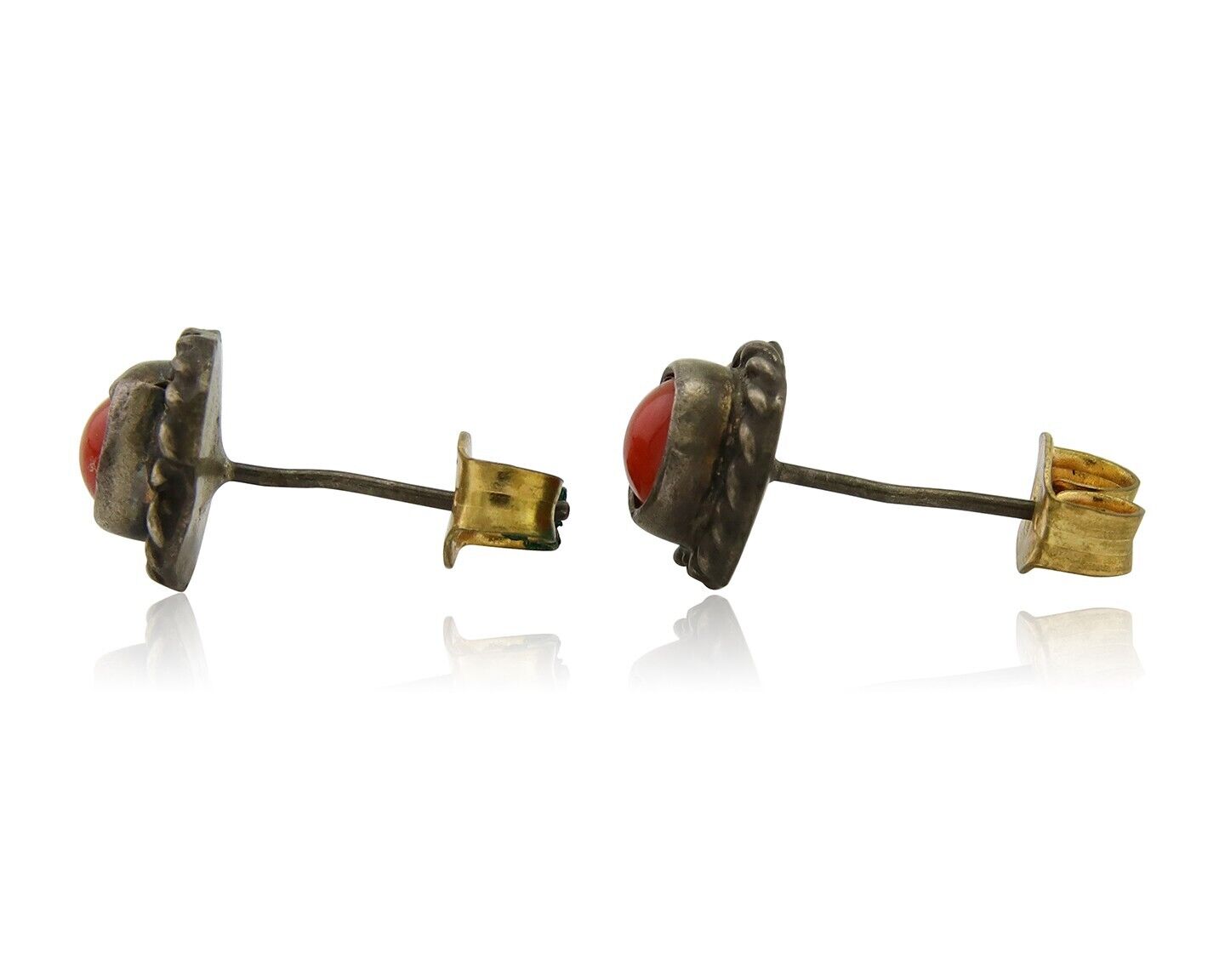 Navajo Earrings 925 Silver Natural Red Coral Native American Artist C.80's