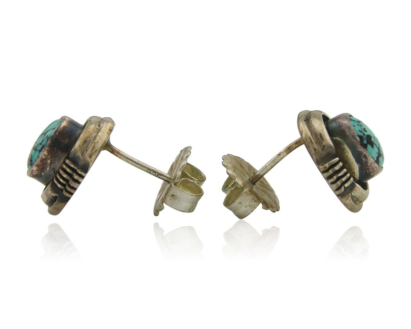 Navajo Earrings 925 Silver Natural Spiderweb Turquoise Artist Signed Yazzie C80s