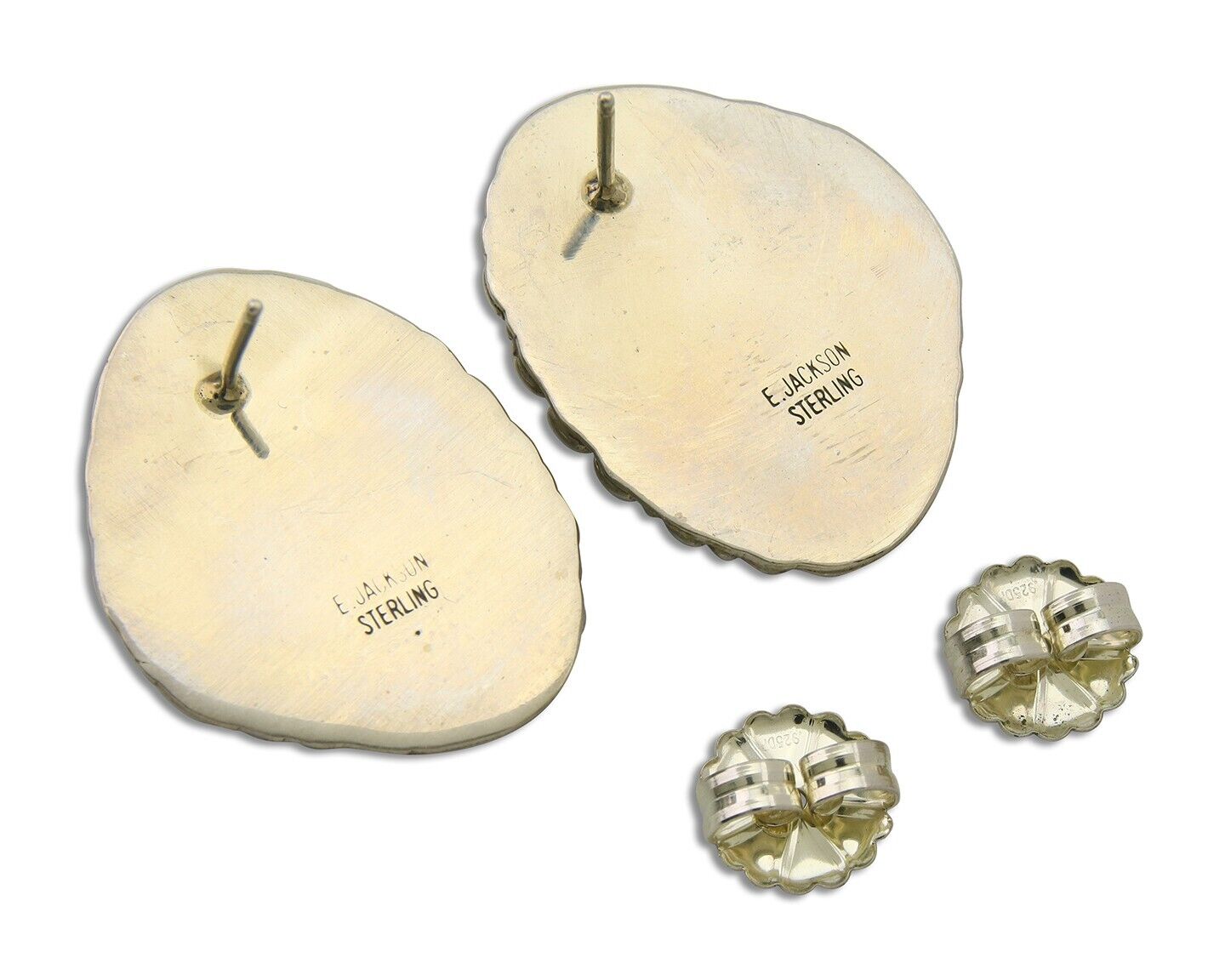 Navajo Earrings 925 Silver Natural Turquoise Artist Signed E Jackson C80s