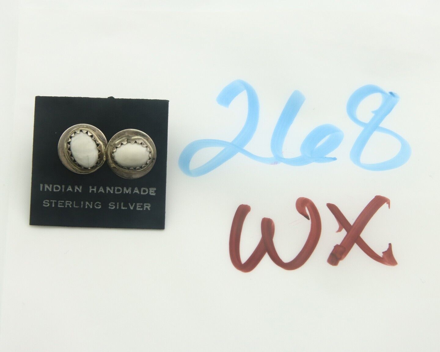 Navajo Earrings 925 Silver White Buffalo Turquoise Native American Artist C.80's