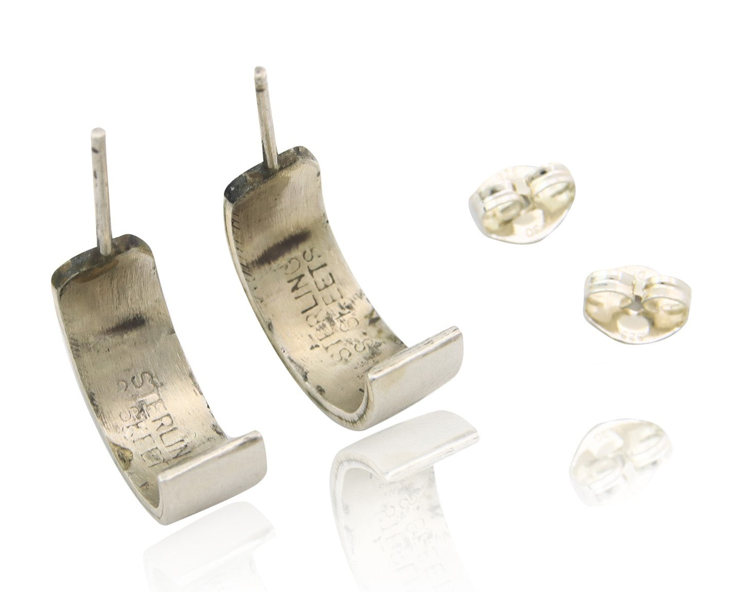 Navajo Earrings Sterling Silver & Gold Vintage Handmade Signed Skeets