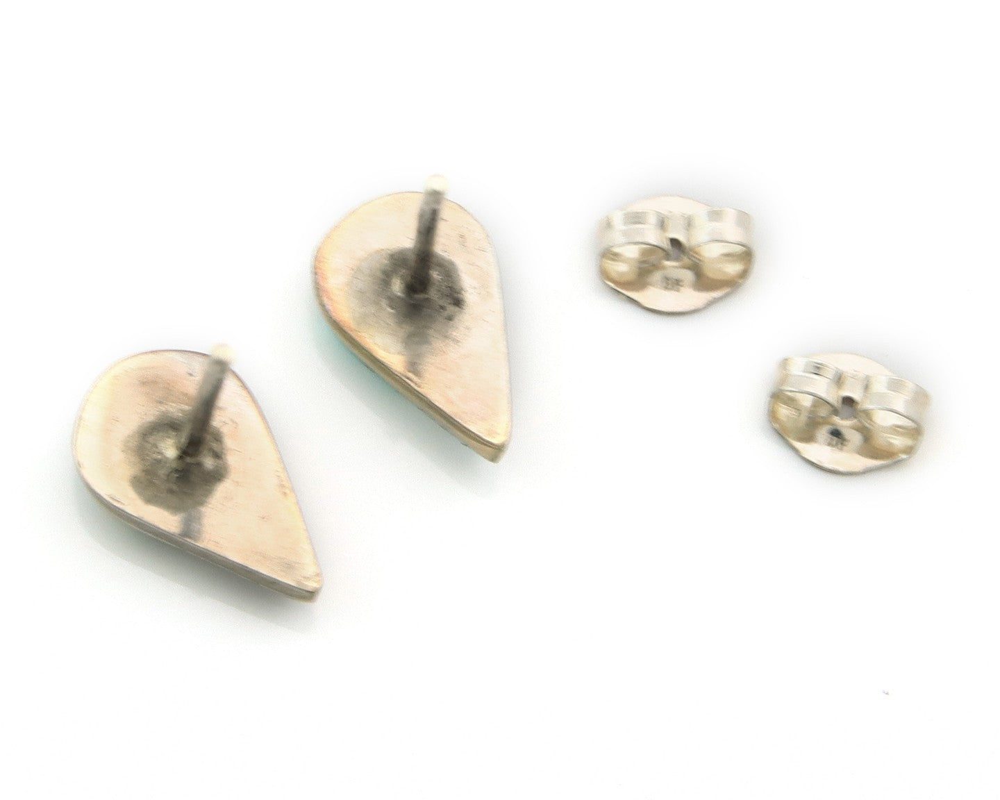 Navajo Earrings Sterling Silver Inlaid Turquoise & MOP Vintage Handmade