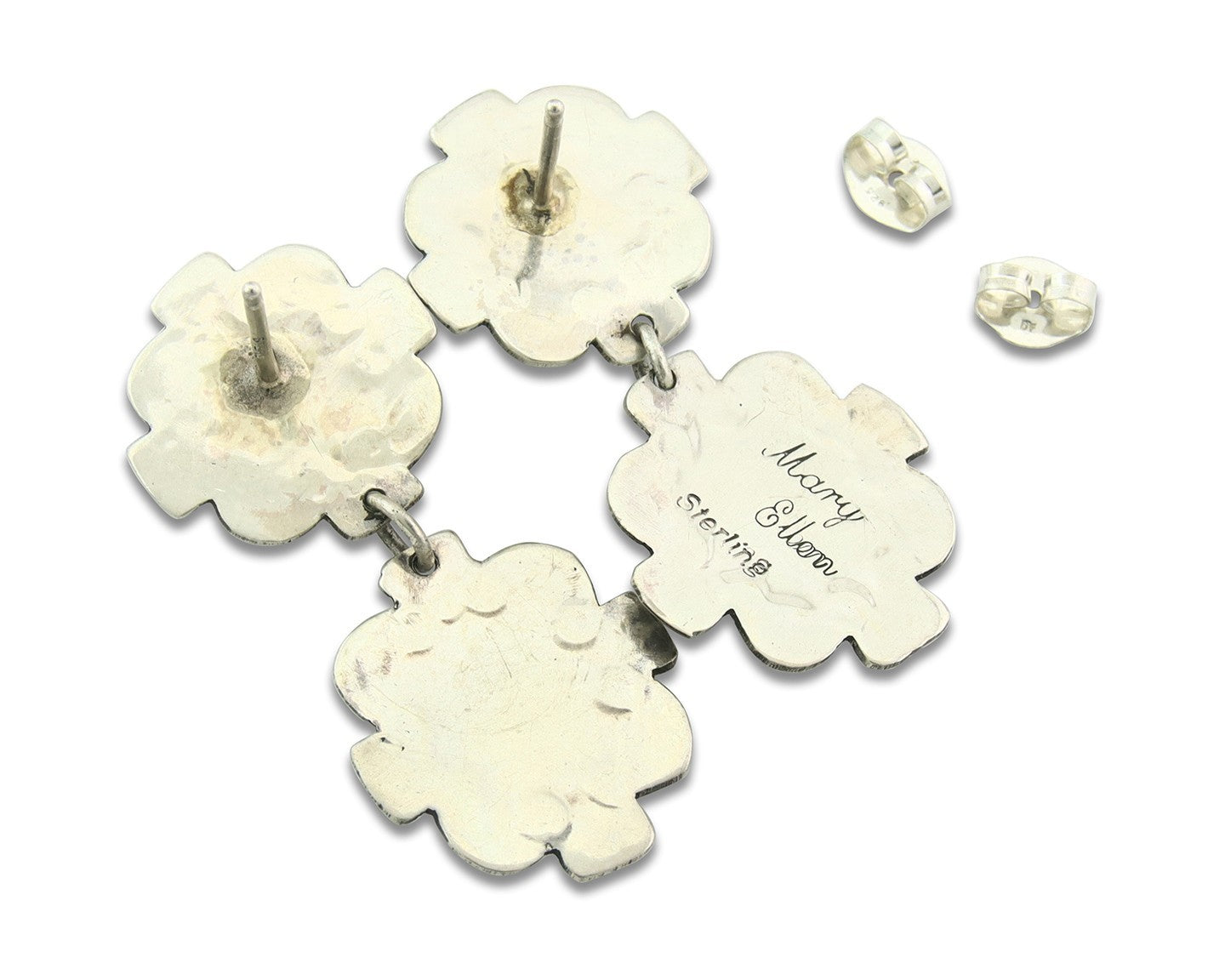 Navajo Earrings Sterling Silver Lapis & Truquoise Vintage Signed Mary Ellen