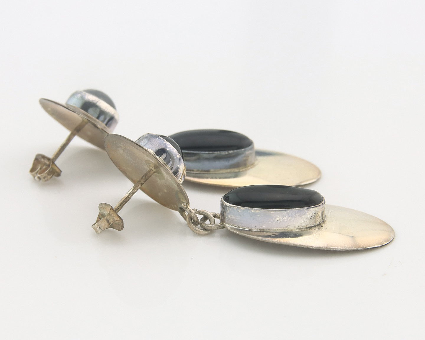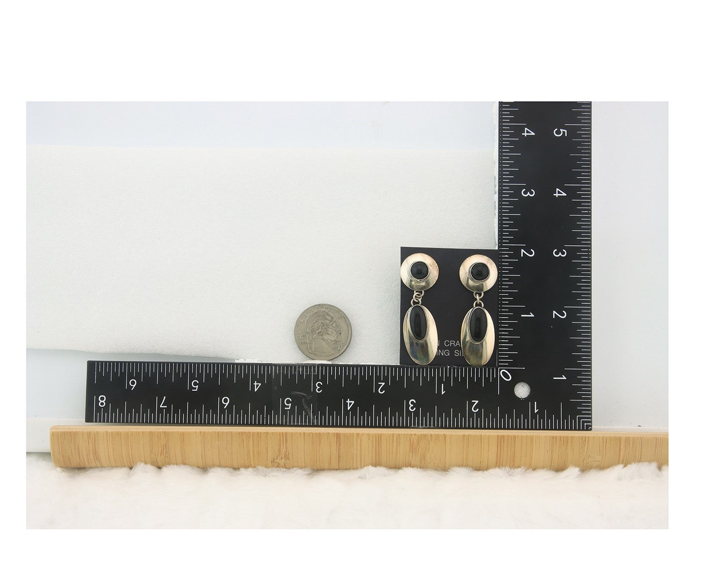 Navajo Earrings Sterling Silver Natural Onyx Dangle Vintage Handmade