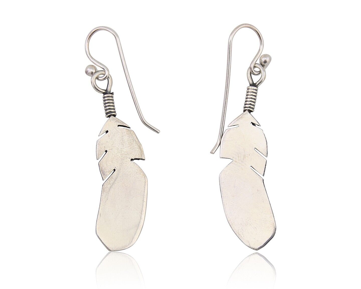 Navajo Feather Earrings 925 Silver Native American Artist C.80's