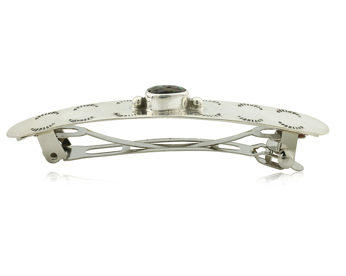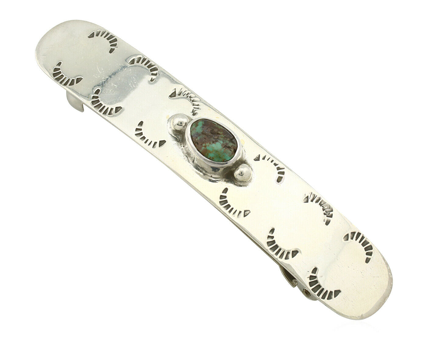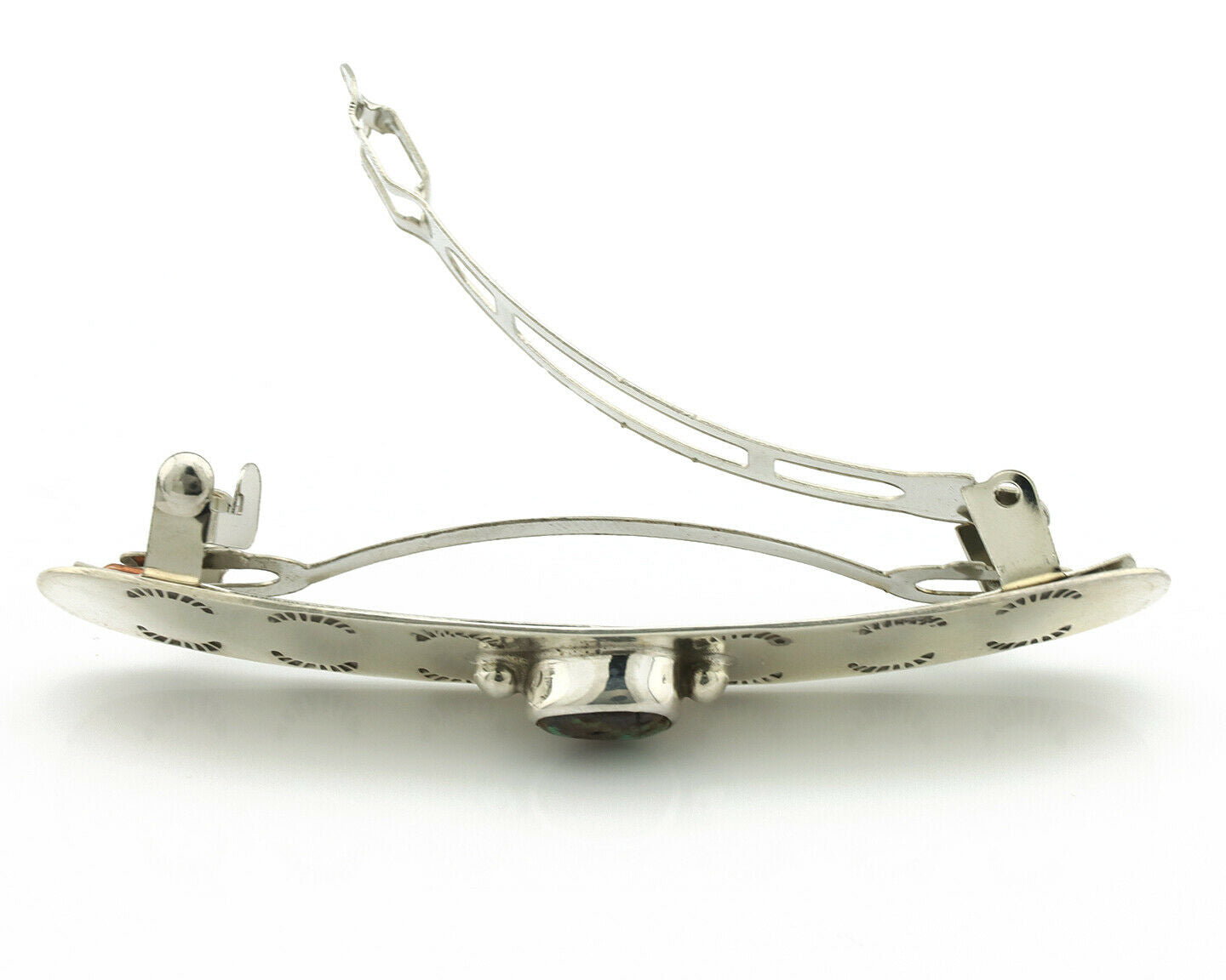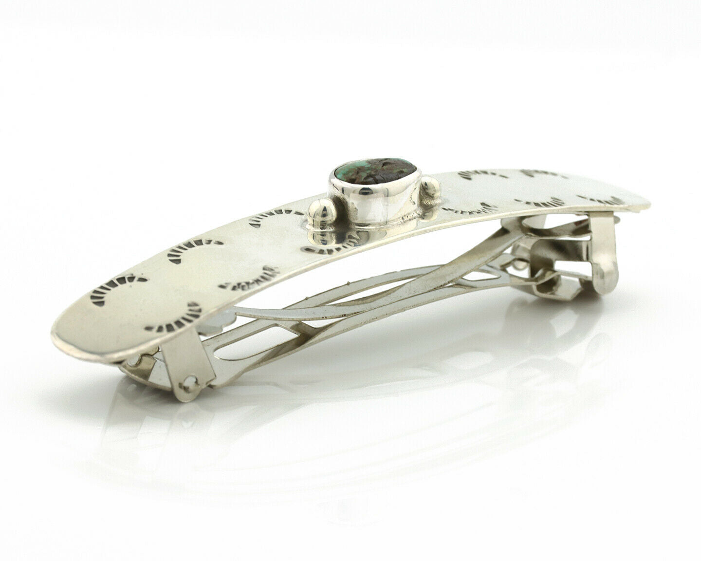Navajo Hair Clip .925 Silver Turquoise Mountain Native American Barrette C.80's