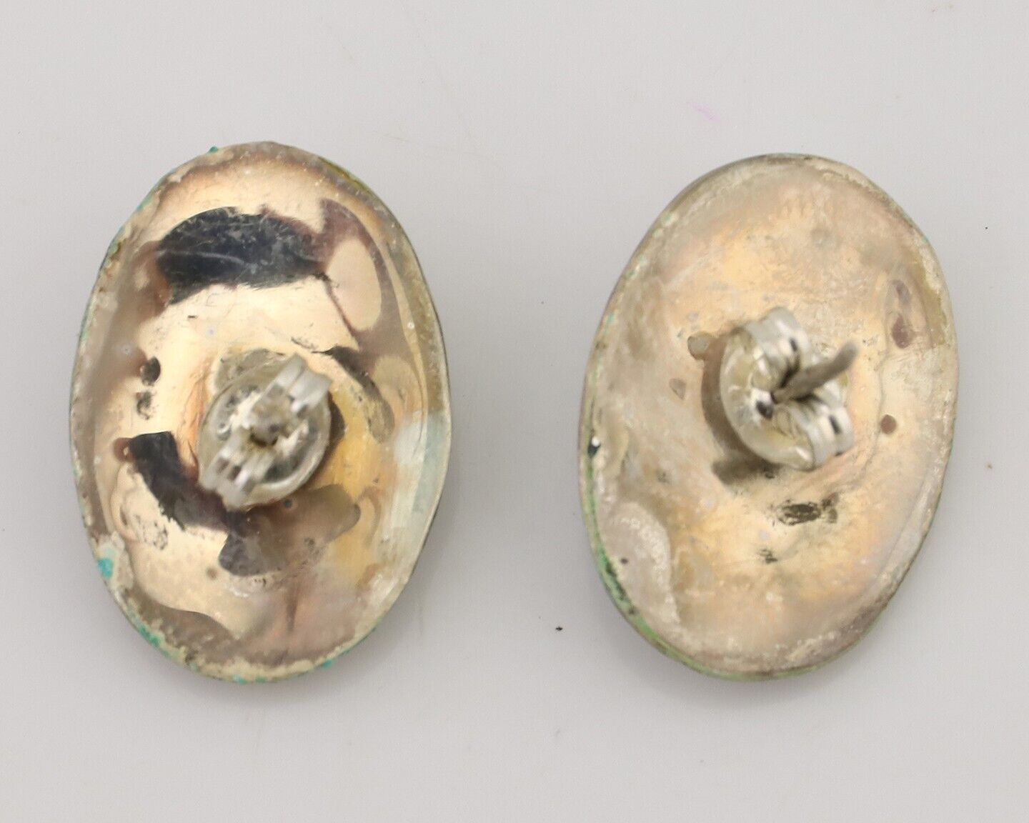 Navajo Hand Cut Earrings 925 Silver Blue Natural Turquoise Native Artist C.80's