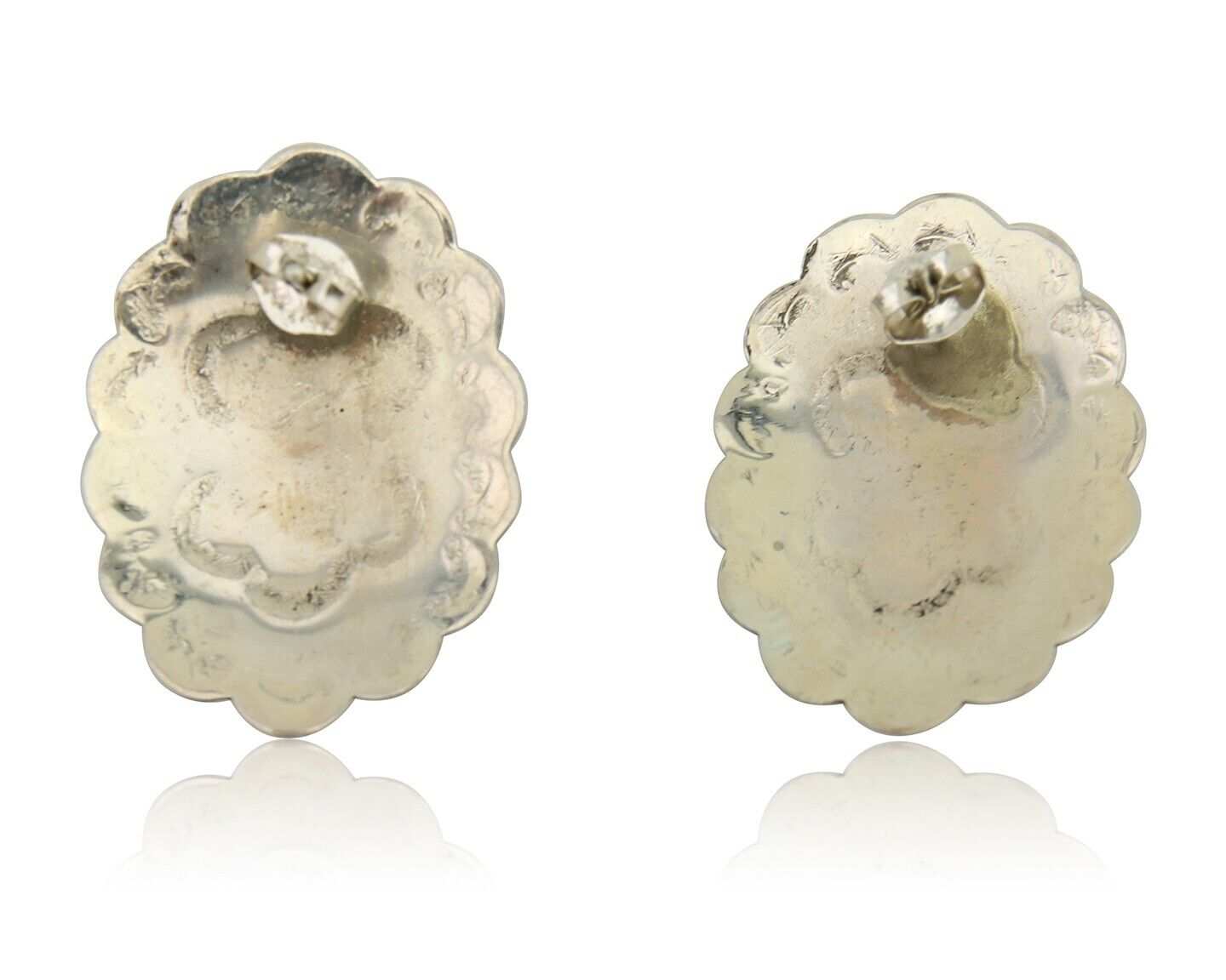 Navajo Hand Stamped Earrings 925 Silver Natural Turquoise Native Artist C.80's