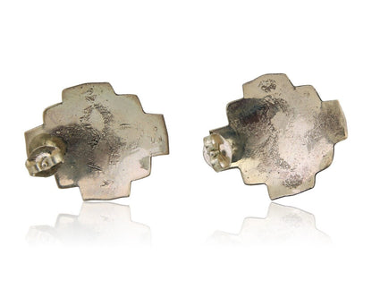 Navajo Hand Stamped Earrings 925 Silver Turquoise Native American Artist C.80's