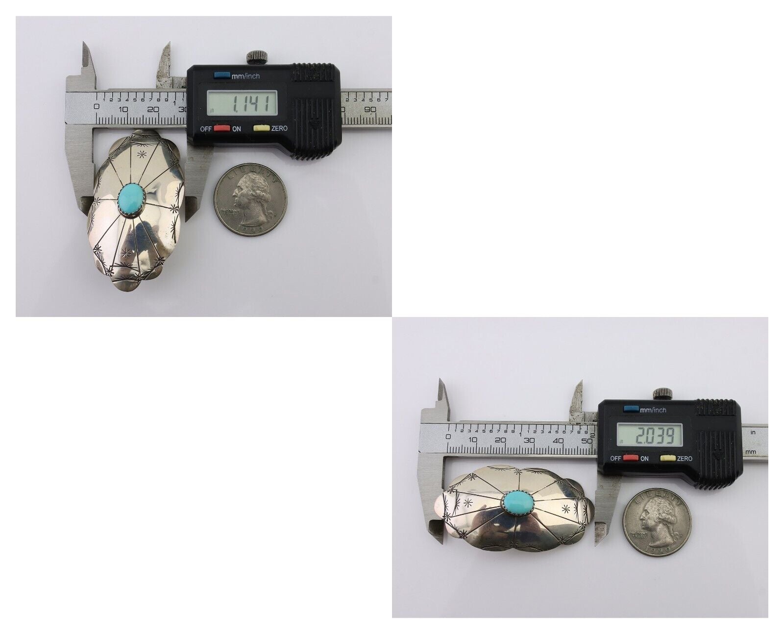Navajo Hand Stamped Shield Earrings 925 Silver Turquoise Native Artist C.80's