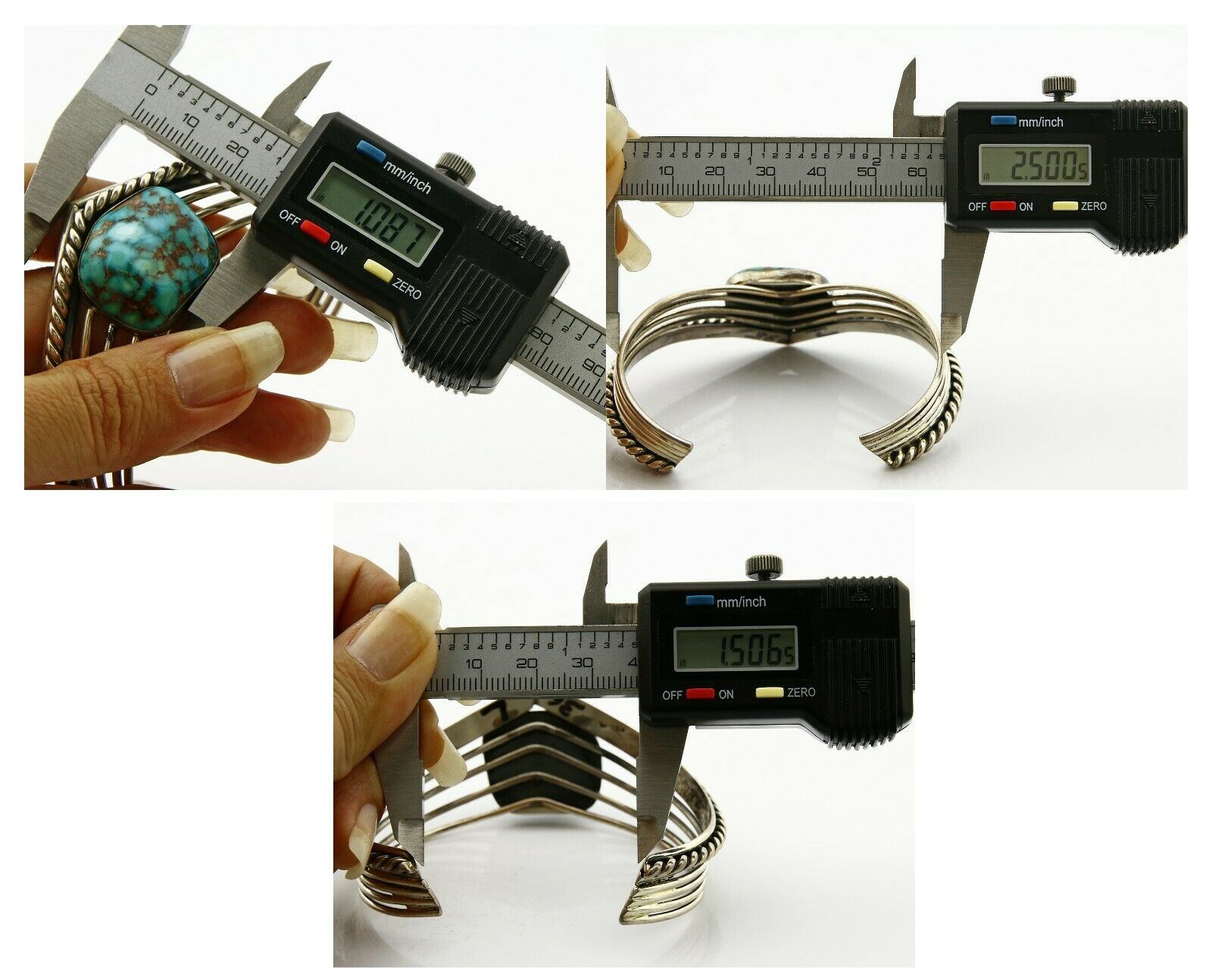 Navajo Handmade .925 SOLID Silver Natural Turquoise 5 Row Cuff Bracelet
