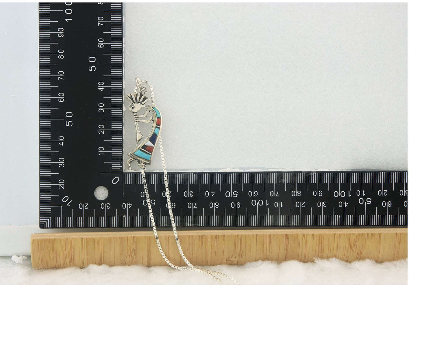 Navajo Kokopelli Necklace Sterling Silver Authentic Natural Gemstone